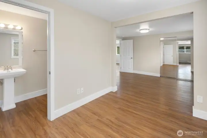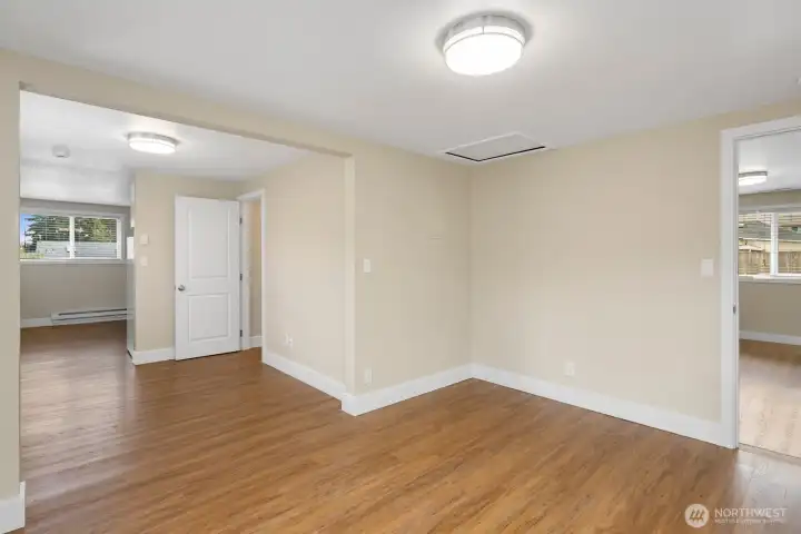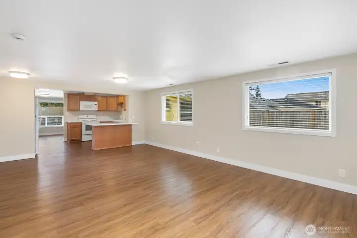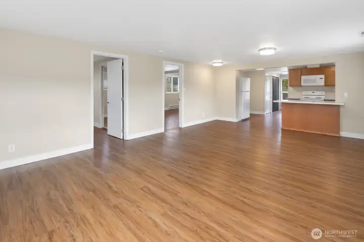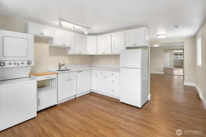 Versatile 4 bed, 2 bath home offering flexibility, space, and future potential. The main living area features an open kitchen and living space, ideal for everyday living and entertaining, along with a full-size washer and dryer. A standout feature of the home is the expansive secondary living area complete with its own kitchenette, bathroom, and separate washer/dryer—perfect for a primary suite, multi-generational living, guest space, home office, or more. Situated on a large quarter acre lot with a huge backyard, this property offers room to enjoy now while also providing long-term upside. Conveniently located near the Mountlake Terrace Transit Station with easy access to I-5, and just minutes to parks, the library, and other local amenities. Located within the Town Center (TC2) zoning district, allowing for potential 4-6 story residential and mixed-use development (buyer to verify). A rare combination of move-in ready living, flexible layout, and future potential in a growing area.
