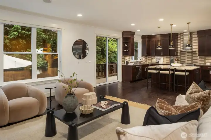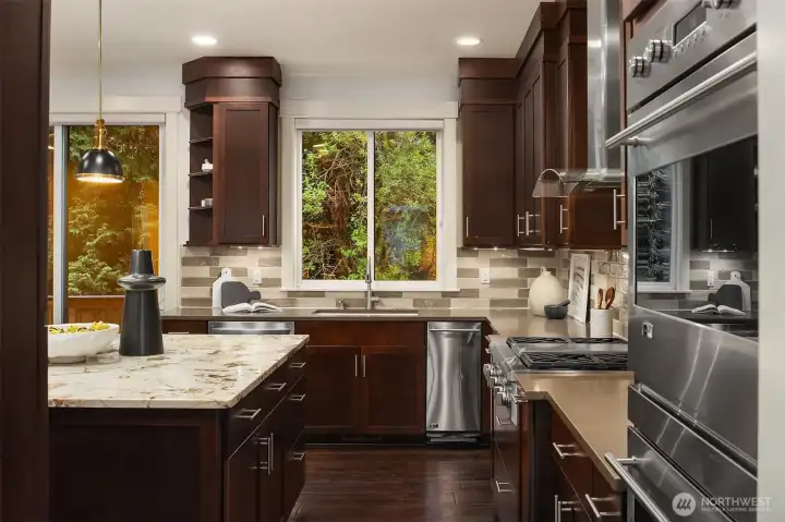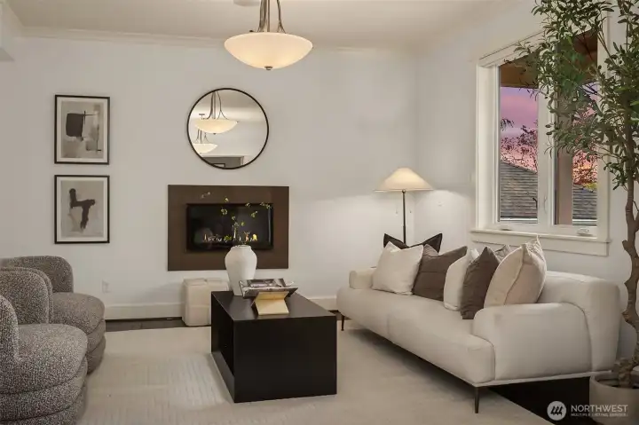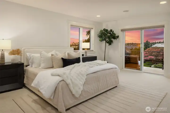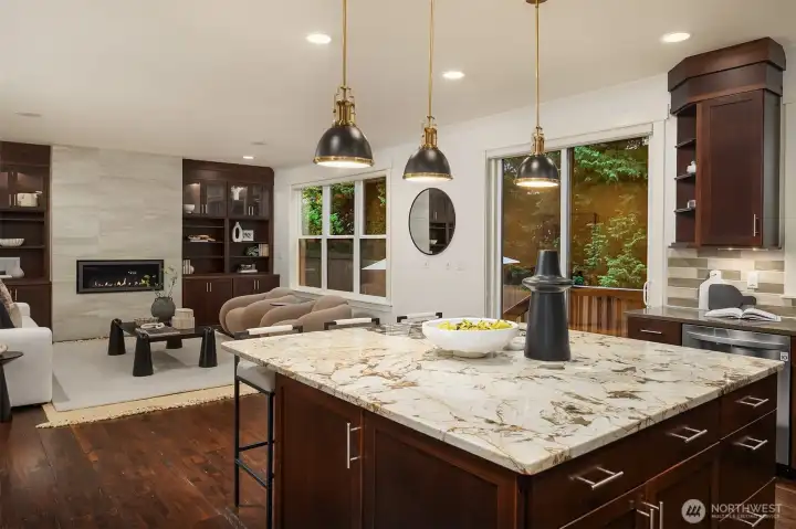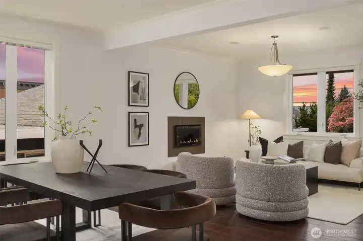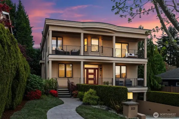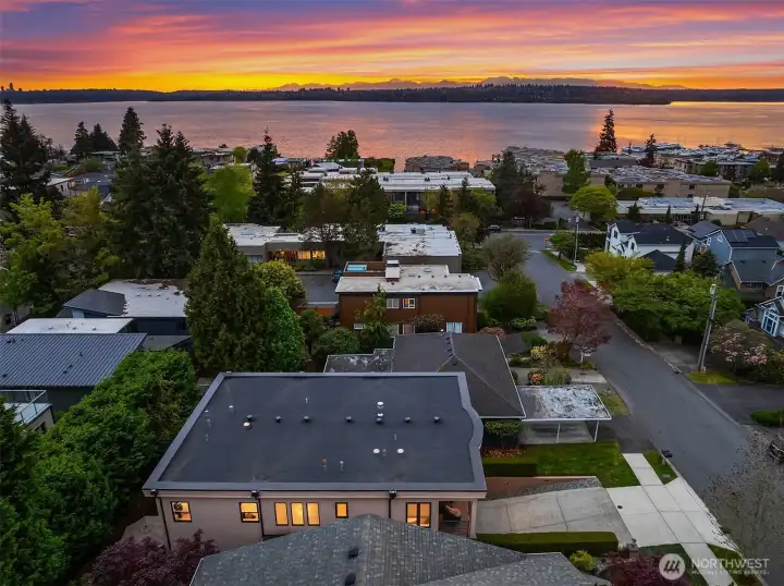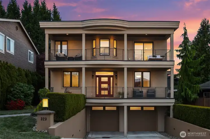 Perfectly positioned near Lake Washington with views stretching to the Olympic Mountains, this beautifully maintained home offers an exceptional Downtown Kirkland location. Thoughtfully designed across 3 levels, the home balances generous entertaining spaces with comfortable everyday living. You are greeted by a main floor office, formal dining room, & living room with gas fireplace. The great room is flanked by custom built ins & flows to the chef’s kitchen fully equipped with rich cherry cabinetry, abundant storage, premium Monogram appliances, & seamless connection to the fully fenced backyard, making gatherings effortless inside & out. Upstairs, discover a bonus room & 3 bedrooms, including a primary suite with large covered deck showcasing exceptional views, a cozy sitting area, gas fireplace, & a refined 5 piece bath. The versatile lower level features new carpets with a rec room, ensuite, & an oversized 2 car garage with epoxy floors & ample storage. Thoughtful updates throughout, including Nest thermostats, security, smart lock, auto-switch generator, & built-in speakers on all levels. This is a compelling opportunity to enjoy expansive views, thoughtful updates, & unmatched walkability to Google, the waterfront & everything Downtown Kirkland has to offer.