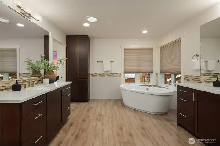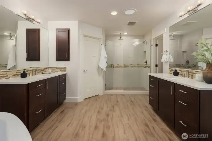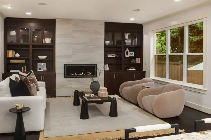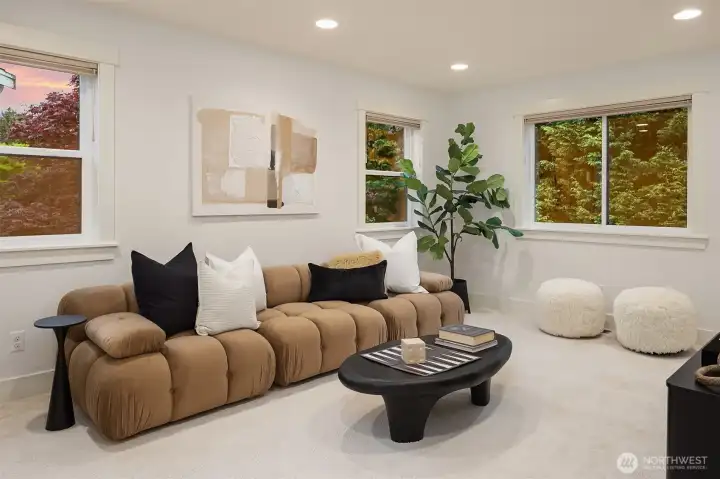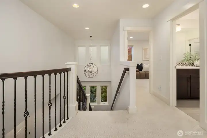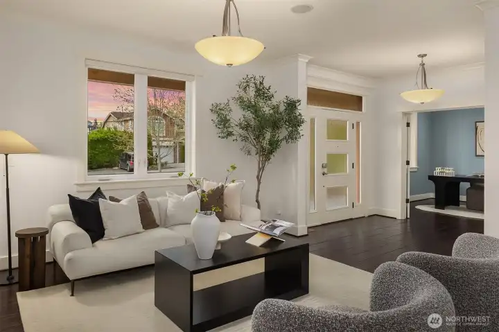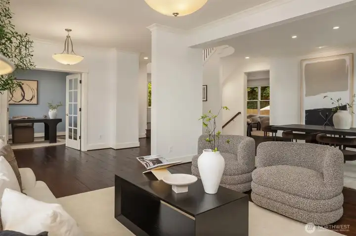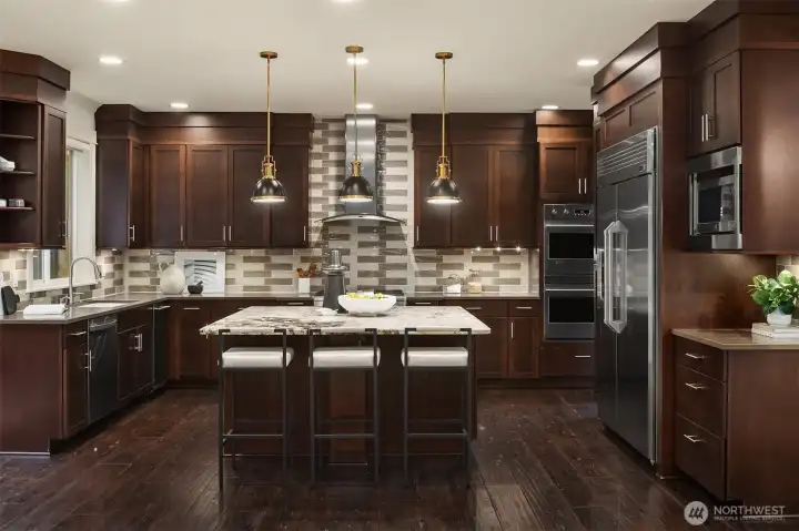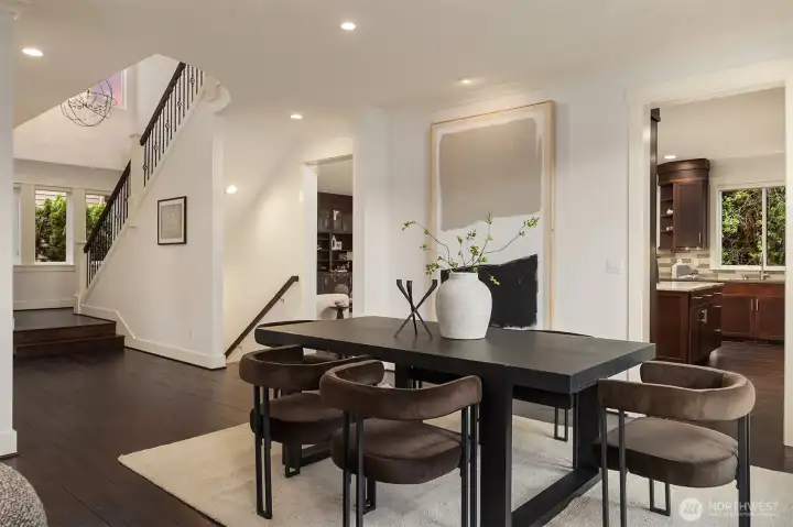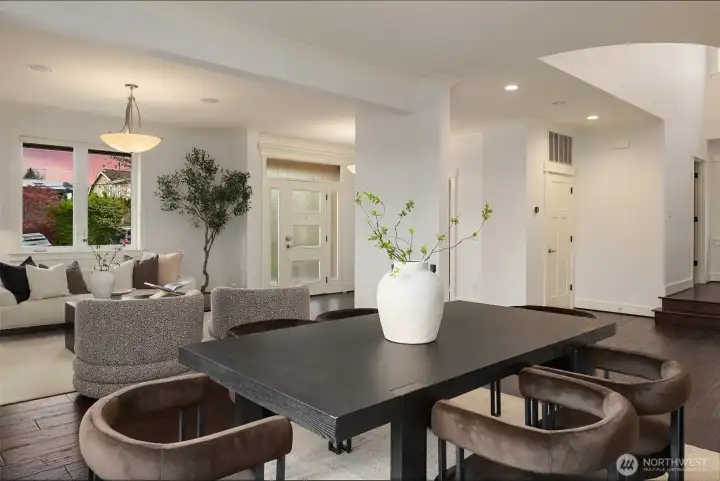 Perfectly positioned near Lake Washington with views stretching to the Olympic Mountains, this beautifully maintained home offers an exceptional Downtown Kirkland location. Thoughtfully designed across 3 levels, the home balances generous entertaining spaces with comfortable everyday living. You are greeted by a main floor office, formal dining room, & living room with gas fireplace. The great room is flanked by custom built ins & flows to the chef’s kitchen fully equipped with rich cherry cabinetry, abundant storage, premium Monogram appliances, & seamless connection to the fully fenced backyard, making gatherings effortless inside & out. Upstairs, discover a bonus room & 3 bedrooms, including a primary suite with large covered deck showcasing exceptional views, a cozy sitting area, gas fireplace, & a refined 5 piece bath. The versatile lower level features new carpets with a rec room, ensuite, & an oversized 2 car garage with epoxy floors & ample storage. Thoughtful updates throughout, including Nest thermostats, security, smart lock, auto-switch generator, & built-in speakers on all levels. This is a compelling opportunity to enjoy expansive views, thoughtful updates, & unmatched walkability to Google, the waterfront & everything Downtown Kirkland has to offer.