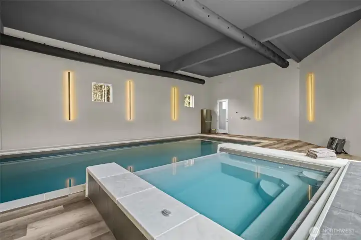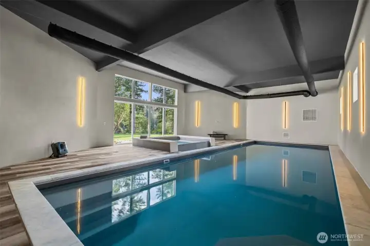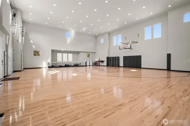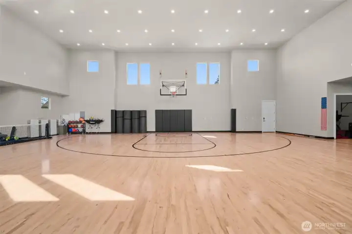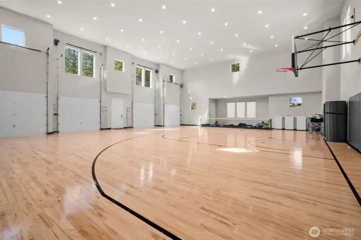 Step into a lifestyle built for energy, entertainment, & everyday living in this extraordinary rambler set on over six pristine acres at the end of one of Bonney Lake’s most coveted communities. Sweeping valley views & unforgettable sunsets make every day feel like a work of art. Spanning 5,000+ square feet, this home is designed to keep up—whether you’re hosting, training, or simply enjoying the space—with a grand chef’s kitchen and expansive island that anchors every gathering, from quick mornings to full-scale entertaining, all flowing seamlessly into open-concept living areas. What truly sets this property apart is the private, resort-level experience: a full indoor sports court for year-round play, a stunning indoor pool, & a dedicated fitness room that eliminates the need to ever leave home. Four spacious bedrooms, a versatile den, & three-and-a-half impeccably appointed baths provide flexibility for guests, work, & recovery. Vaulted ceilings & natural light energize the interiors, while Lutron automated blinds, central A/C, & brand new solar panels with Tesla Powerwall deliver efficiency, comfort, & independence. Arrive down the extended drive to beautifully lit, manicured grounds, then unwind on the level lawn, gather around the firepit, or recharge on the covered, heated patio with fireplace. Offering rare scale, privacy, & true lifestyle-driven design at a value far below replacement cost, this is a standout opportunity—and one that rarely comes available.
