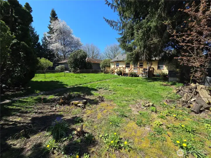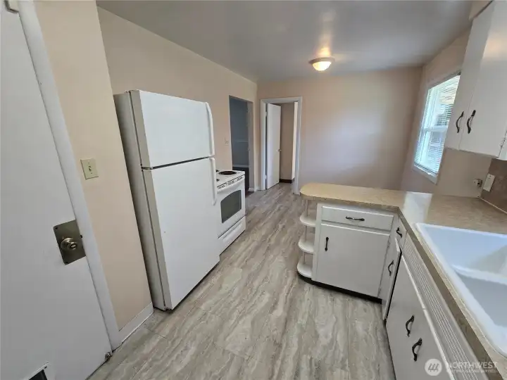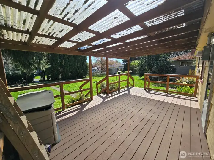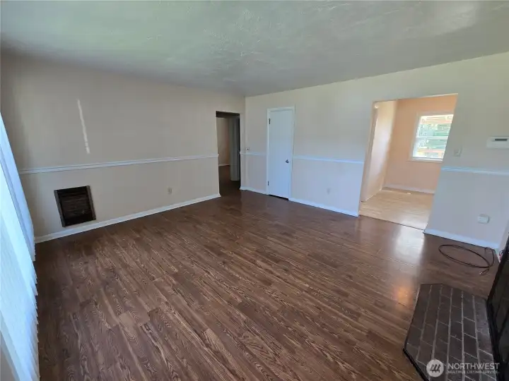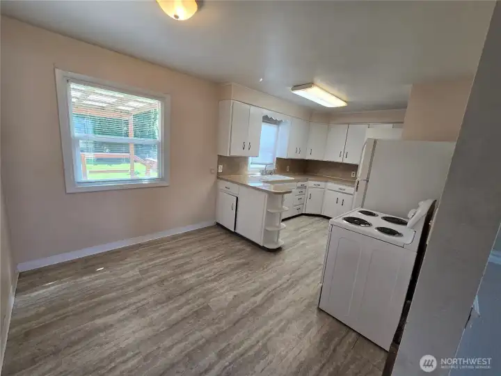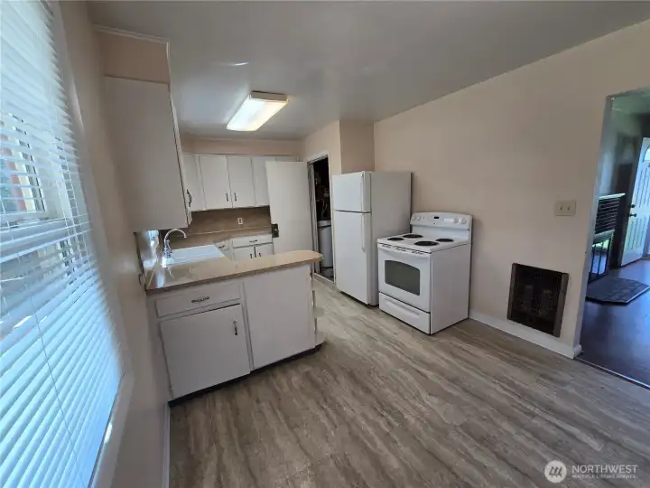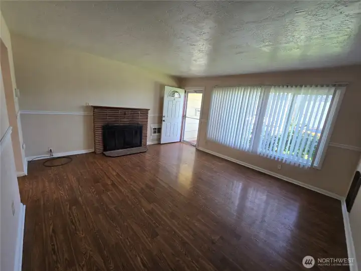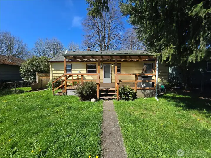 Step into this cozy 2-bedroom, 1-bath home where easy care laminate flooring flows throughout and a wood-burning fireplace anchors the living space, perfect for cool evenings. You'll enjoy meal prep in this light and bright kitchen with adjoining dining area. Out back, a covered deck invites morning coffee or evening gatherings, overlooking a fully fenced backyard with trees-an ideal spot to relax, play, or entertain in privacy.