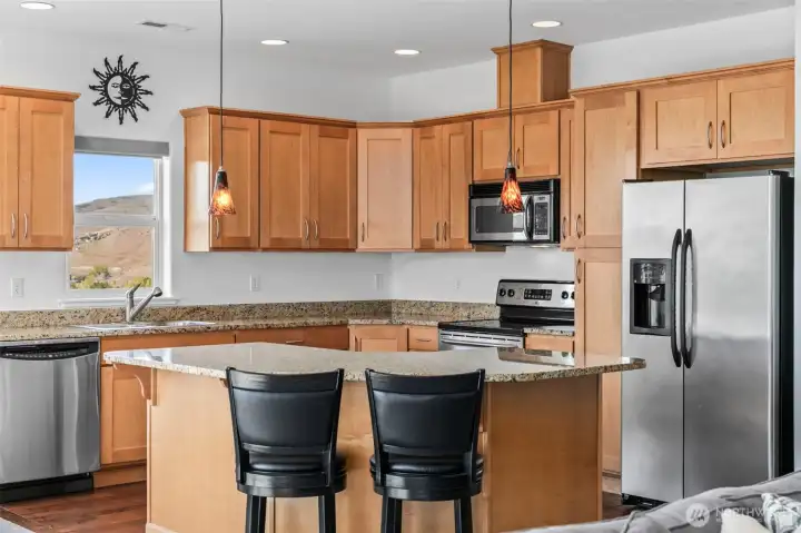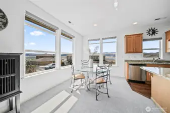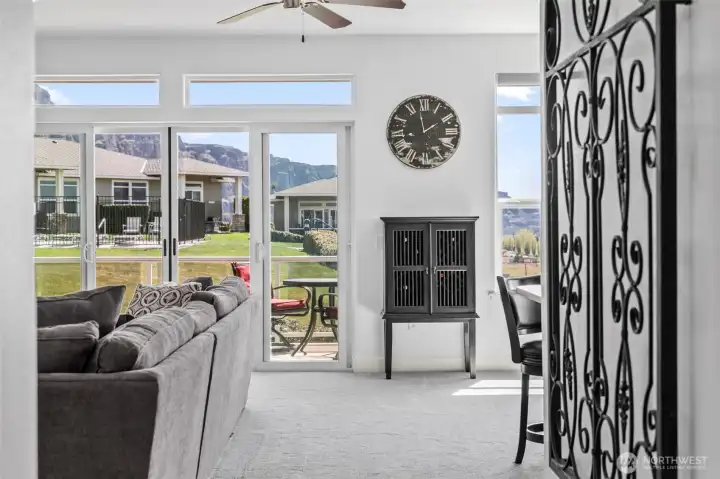 Discover the epitome of resort living in the esteemed gated community of Sunserra in Crescent Bar, where this meticulously designed custom home boasts a rare stand-alone corner unit bungalow without shared walls, offering unparalleled Columbia River views. The highly sought-after single-level open concept floor plan is ideal for entertaining, featuring a spacious living room adjacent to the dining room and a chef's kitchen ideal for the entertainer, all surrounded by the distinct Basalt cliffs and commanding views of the Columbia River and beyond. The expansive primary bedroom, complete with a custom bathroom and oversized closet, is designed for ultimate comfort. Enjoy the manicured grounds with community pools steps away or retreat to the deck to unwind. A massive three-car 1183sf garage/shop perfectly complements the lifestyle for those who desire all that this resort community offers.