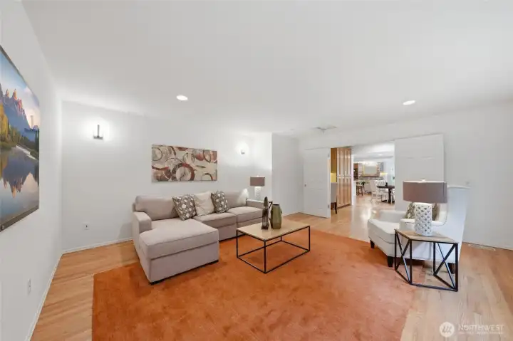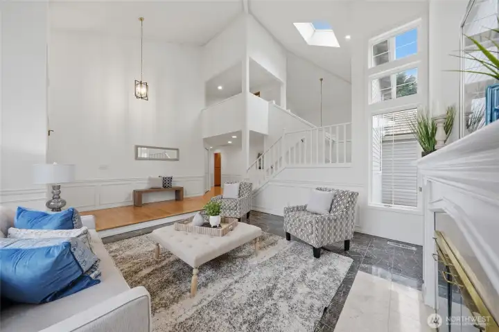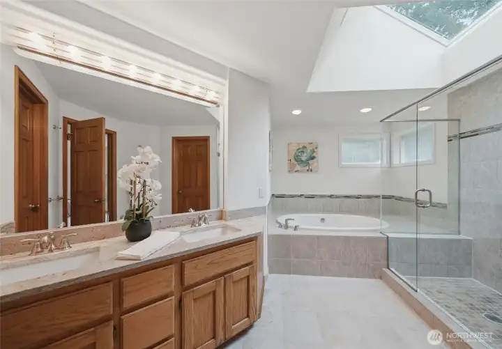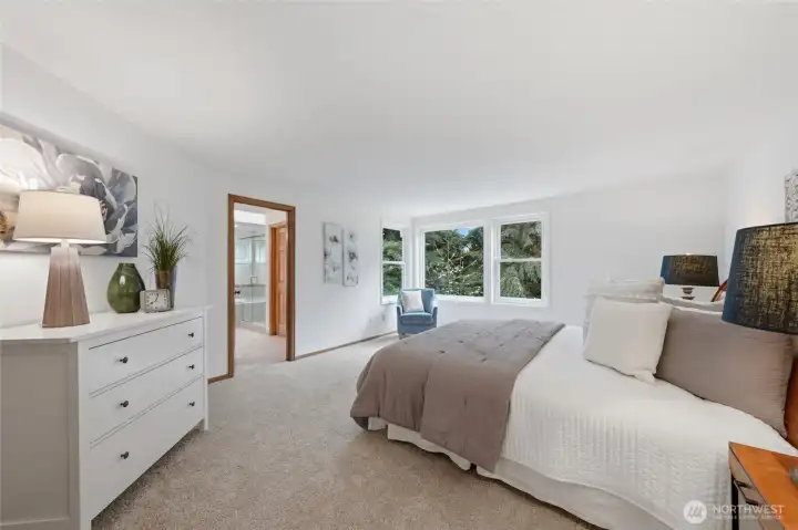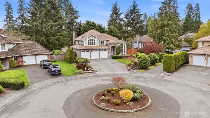 Tucked away on a quiet cul-de-sac in the sought-after Parkside neighborhood of Mill Creek, this exceptional Murray Franklin home sits on one of the community’s premier homesites, surrounded by parks and scenic trails. Thoughtfully updated with new luxury carpet, fresh interior paint, beautifully painted millwork, crown molding, wood-wrapped windows, and updated bathrooms, this home blends timeless elegance with modern comfort. A three-car garage adds convenience and function. The main level features a formal living room with soaring cathedral ceilings, elegant fireplace, and expansive windows filling the space with natural light. The formal dining room, with classic wainscoting, flows into the open kitchen with Silestone, newer stainless-steel appliances, and peninsula island, which transitions into the inviting family room with cozy fireplace. Off the kitchen is a casual dining area opening to a spacious deck and patio for outdoor living. Not to be missed is a flexible bonus/media room for game days or movie nights, plus a main floor office and updated powder room. Upstairs includes four spacious bedrooms, including a light-filled Owner’s Suite with walk-in closet and updated five-piece ensuite, and an updated full bath serving the additional bedrooms. A private, fenced backyard feels like a lush, serene park with mature landscaping, an expansive deck, and a patio. All just minutes to Mill Creek Town Center, top-rated schools, Mill Creek Country Club, and community parks.