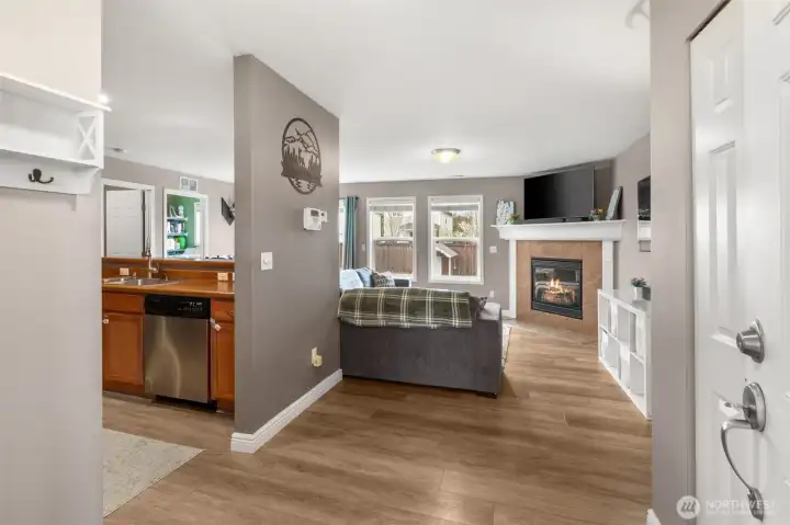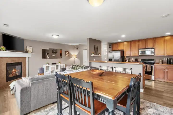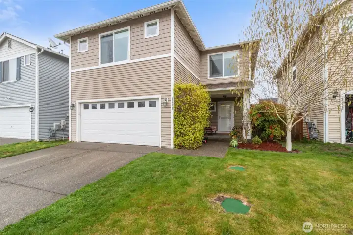 Spacious and thoughtfully designed, this home features 3 oversized bedrooms, 2.5 bathrooms, and a versatile loft perfect for a home office or additional living space. Enjoy open-concept living with updated LVP flooring and a cozy gas fireplace. The kitchen boasts stainless steel appliances and a large pantry for ample storage. All bedrooms include generous walk-in closets, while the primary suite offers a private bath and an expansive walk-in closet. Situated in a quiet cul-de-sac within a neighborhood featuring community parks, this home offers both comfort and convenience. Enjoy a fully fenced yard and welcoming covered front porch—perfect for relaxing or entertaining. Ideally located with a ~20-minute commute to JBLM and just 15 minutes to Lacey or Olympia, plus schools, restaurants and entertainment are within walking distance. Complete with a 2-car garage, this home truly checks all the boxes.