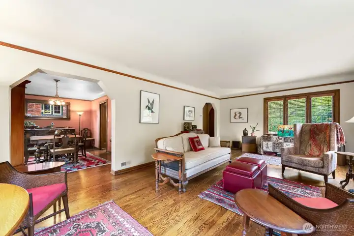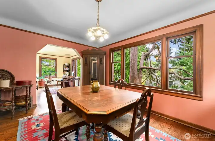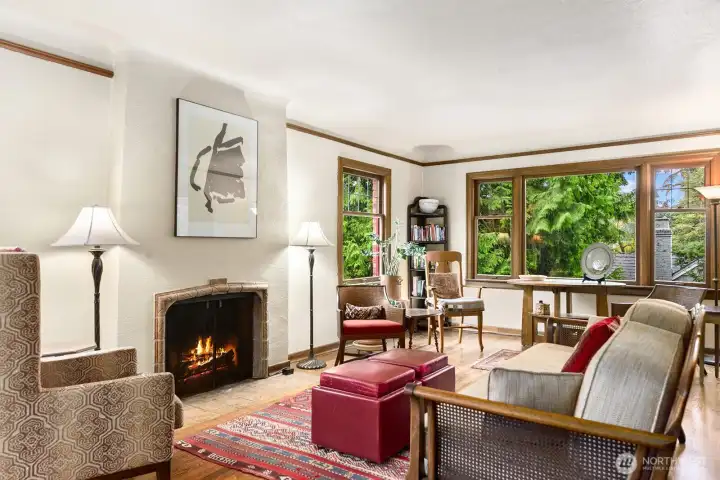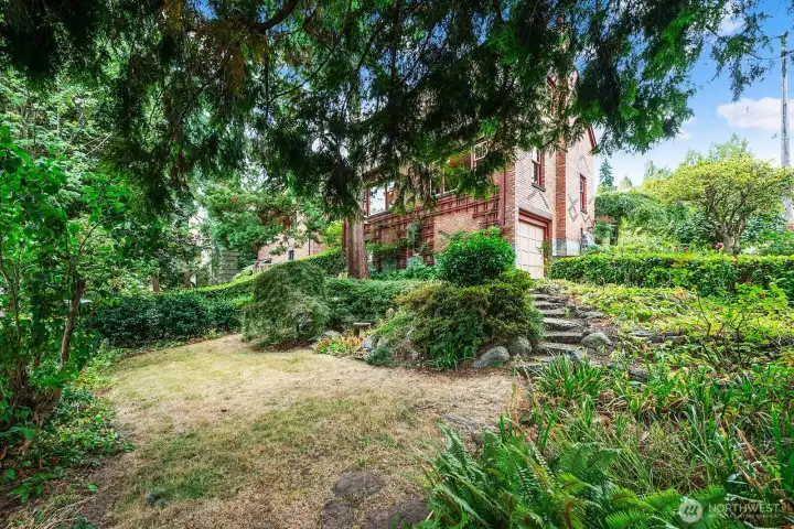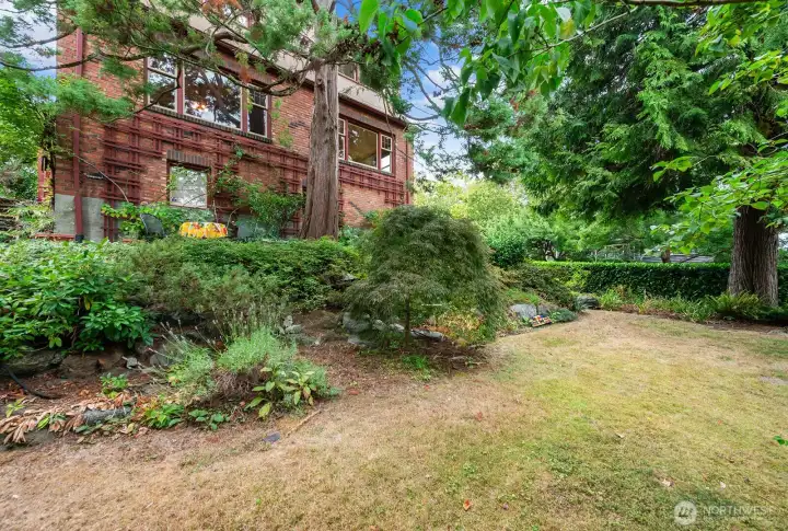 Arboretum Tudor, corner lot on quiet street! Charm intact! Beautiful yard- a gardener’s delight complete with flat yard! Main level has a large living room flooded with natural light, generous dining room, kitchen with breakfast nook & outside access, and powder room. Upper level efficiently laid out with 3 large bedrooms, additional office/nursery, full bathroom, ample storage. Basement with high ceilings, expansion potential. Amazing location, walk to the lake, parks, and cafes. Central to all Seattle amenities.