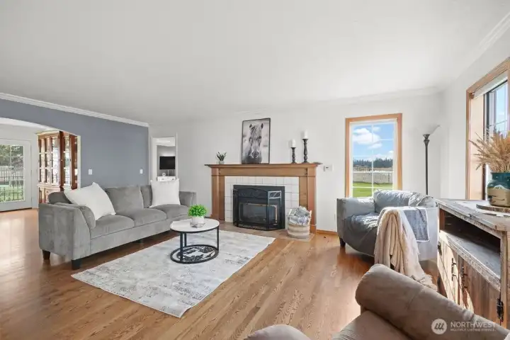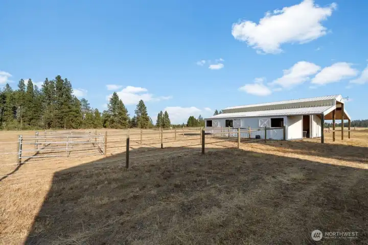 Country Farmhouse, South of Spokane – Best Location! This amazing home is ideal for horses, animals, or hobby farming. Enjoy the peaceful, country setting. Inside, you’ll find 4 spacious bedrooms, including a luxurious primary suite w/ a spa inspired bathroom featuring double sinks, a walk-in shower, garden tub & French doors that open to the spacious decking. The laundry room is on the main floor. Beautiful hardwood flooring throughout. The updated kitchen boasts stainless steel appliances, double ovens, Corian countertops, a reverse osmosis water system, pantry, roll-out drawers, French doors leading out to deck—perfect for both everyday living & entertaining. A formal dining room w/ French doors, & 2 family rooms. Basement offers rec room, stove & exercise area. 30x40 Shop has stove, barn has /3 stalls, water, electric & 3 runs. Views surrounding entire property. Ask to see amenity list for all updates! Fenced & crossed fenced. Fruit Trees and so much to love!