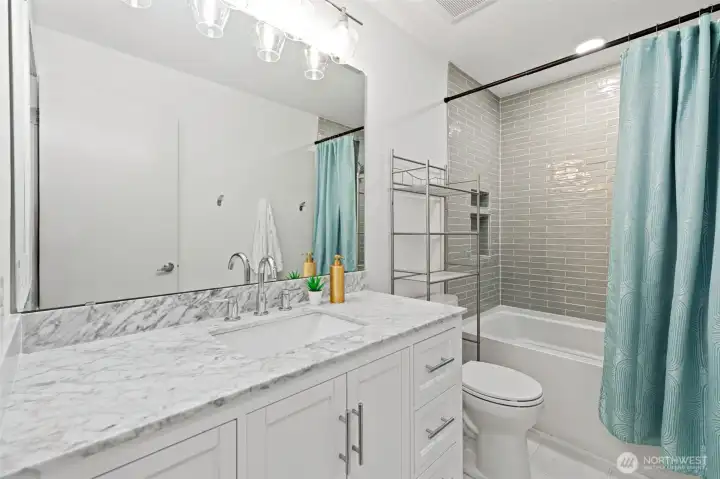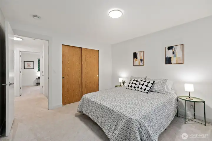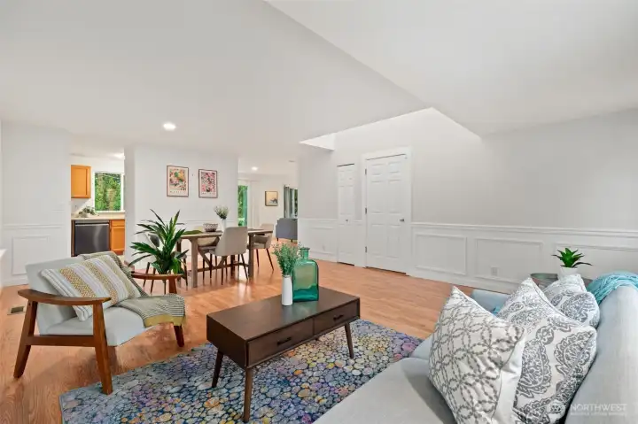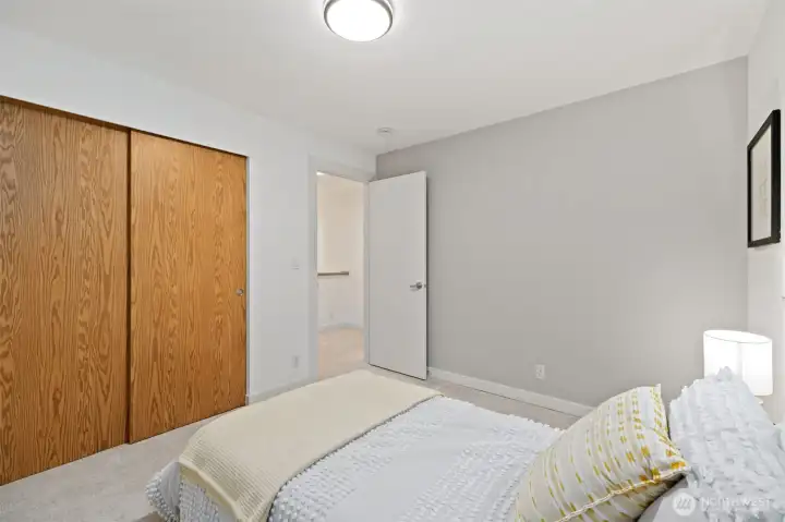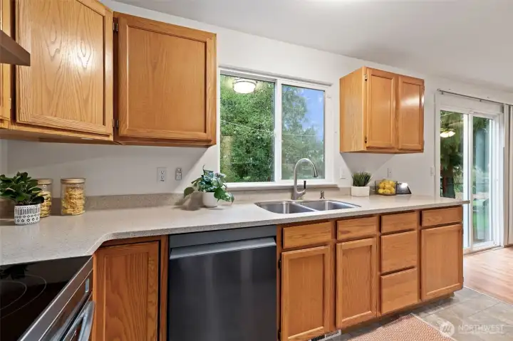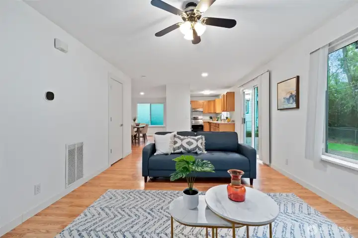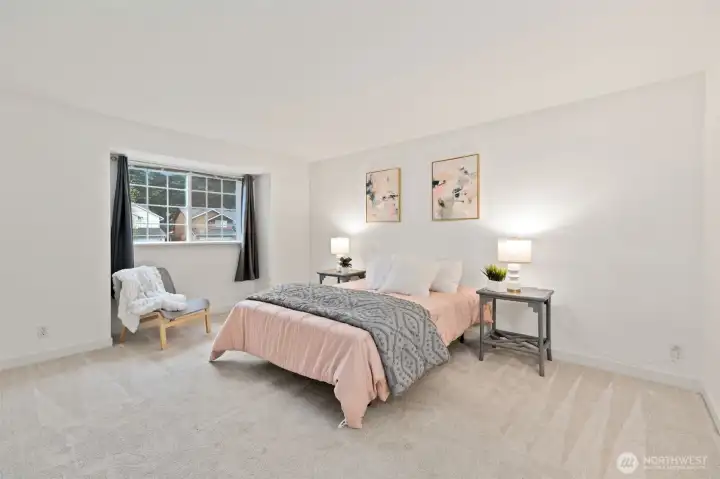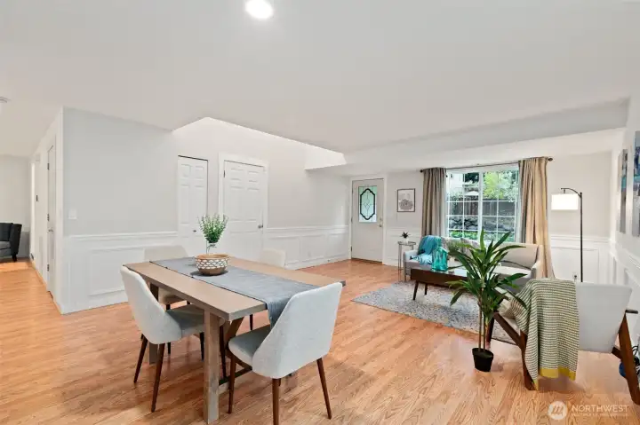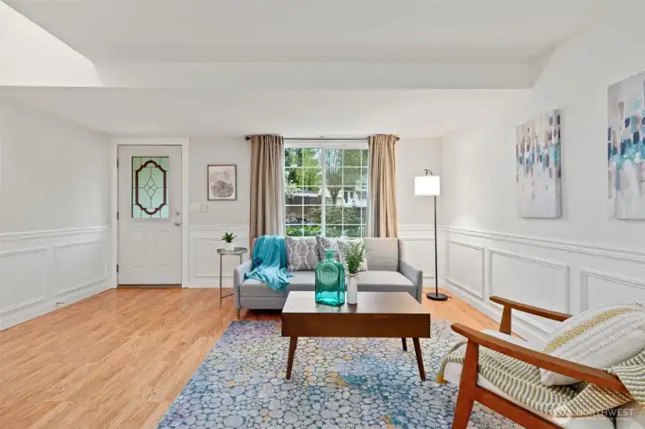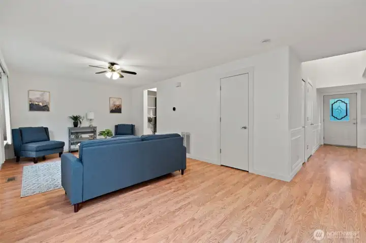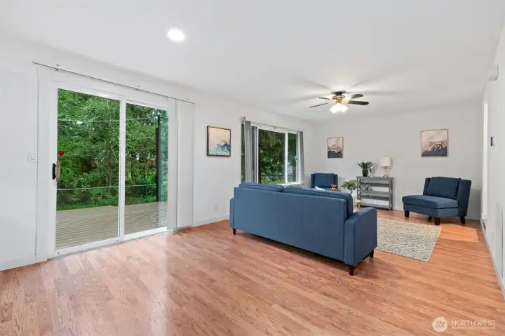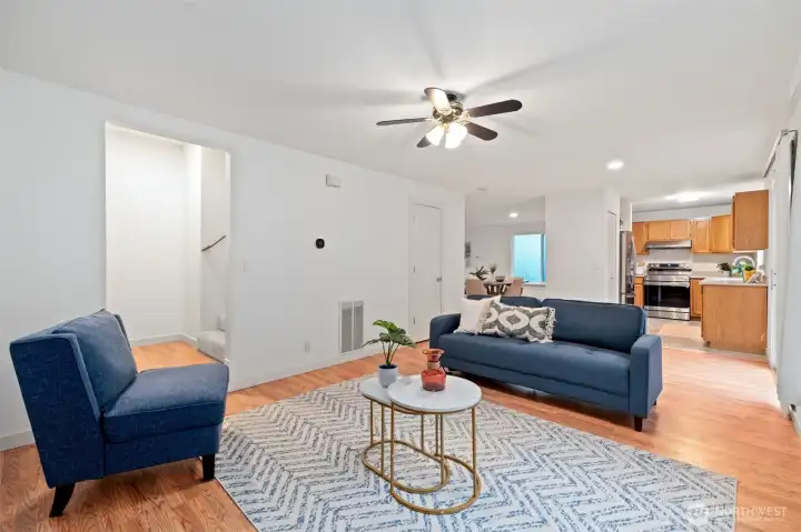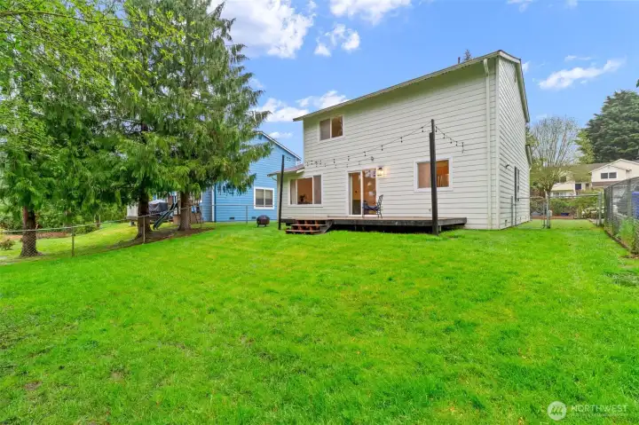 Move in ready, two-story home in a desirable cul-de-sac location convenient to Boeing, Freeways and minutes to Mukilteo Waterfront and Forest Park. Flex space front living and dining room with chair rail and shadow boxing. Wood laminate floors throughout main level. Rocker light switches. 6 panel white doors and white painted millwork. Kitchen with custom solid surface countertops, Stainless Steel appliances including brand new smooth top electric range + hood vent, newer Dishwasher and Refrigerator & newer vinyl floors. Open concept to eating nook and family room, perfect for entertaining. Sunny east/west exposure for great natural light. Primary suite with attached updated full bath and walk-in closet. Newer LG Washer & Dryer. A fully fenced spacious yard with Trex decking, garden lights & backs to a quiet greenbelt. Newer efficient Trane heat pump, AC, furnace, and water heater tank. Attached two-car garage. Low maintenance cement planked siding. No HOA. Pre-inspected for peace of mind.