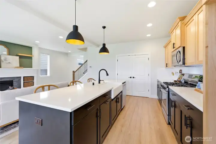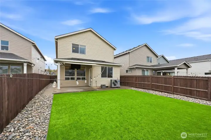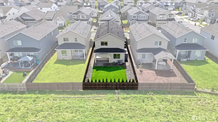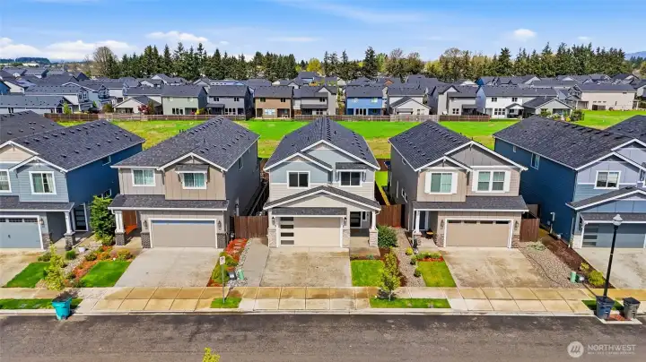 There are homes that ask you to squint a little, to envision yourself into a space that's only halfway there. This isn't one of them. A Pacific Lifestyles build; and in Clark County, that name carries its own distinction and credibility: thoughtful construction, true craftsmanship, long-term durability. Conscientious sellers have taken care of it since, evident in every room. The kitchen earns attention without demanding it. A gas range, custom finishes that read as intentional rather than common, and a walk-in pantry that quietly inspires organization. The details are the kind you notice on move-in day and keep noticing after. Inside, two bonus spaces in addition to four full bedrooms, do what most homes in this price range won't offer you: a proper office nook for focused work, and a generous upstairs landing that stays open to interpretation. Play, study, storage, creative overflow, or some combination that fulfills your needs. Outside, the backyard trades lawn obligation for turf, pristine year-round and maintenance-free by design. A covered patio with an outdoor electric TV mount makes the case, rather persuasively, for hosting. Beyond the property line, a greenspace buffer extends the sense of the lot without extending the upkeep, lending the yard a quietness and privacy that feels rare. The practicalities are already sorted: an EV charger, an extended driveway that makes off-street parking a given rather than a negotiation.