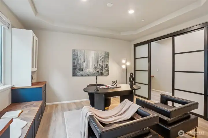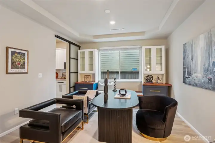 Welcome to Alpine Glen—a rare opportunity to own in an intimate community of just 27 homes by Lennar. Thoughtfully designed for modern living, this spacious home offers a versatile and functional layout with room for everyone. Upstairs features 3 generously sized bedrooms, including a comfortable primary suite, along with a conveniently located laundry room for everyday ease. A main-floor bedroom with a nearby ¾ bath provides the perfect setup for guests, multi-generational living, or a private workspace. At the heart of the home, the chef-inspired kitchen shines with a massive island, sleek stainless steel appliances, and a butler’s pantry—ideal for entertaining and seamless hosting. The adjacent office is elevated with beautiful custom built-ins, creating a polished and productive work-from-home environment. This home is loaded with thoughtful upgrades, including an electric car charger, upgraded electrical with a smart panel for modern efficiency, ceiling fans, and smart vents. Enjoy year-round comfort and protection with UV-blocking window film and AC, while the fully fenced backyard with a 4-zone sprinkler system offers easy maintenance and outdoor enjoyment. Tucked into a quiet, well-maintained community, this Alpine Glen gem blends comfort, convenience, and smart upgrades—ready to welcome you home.