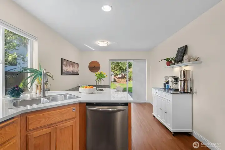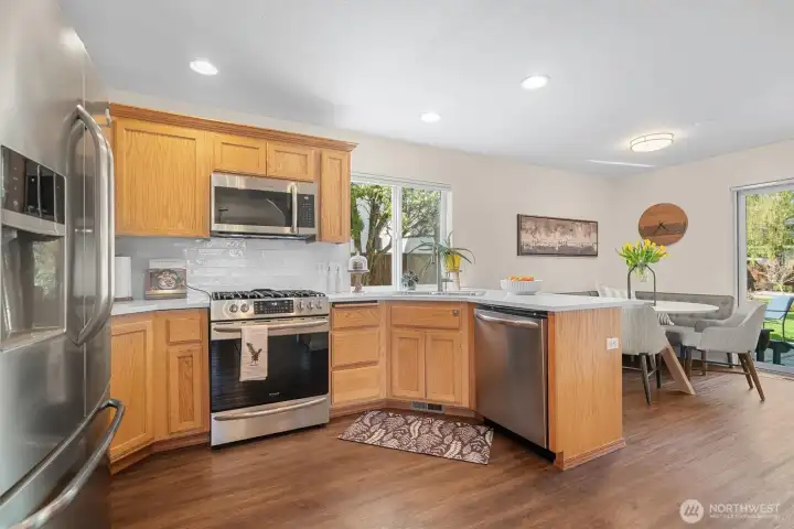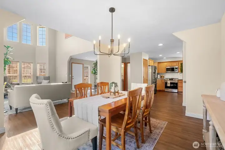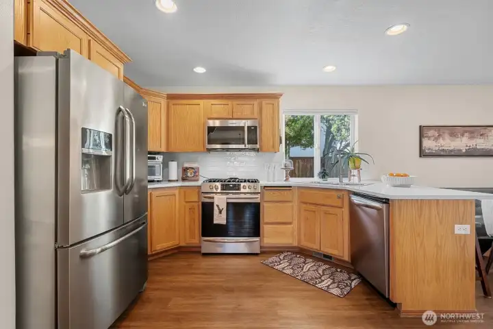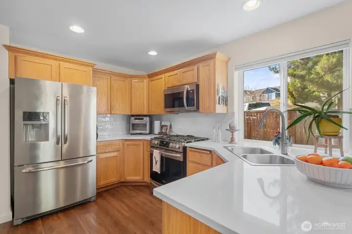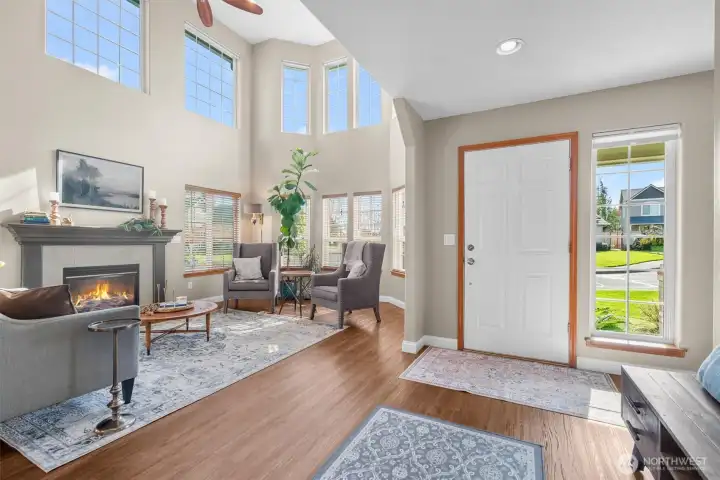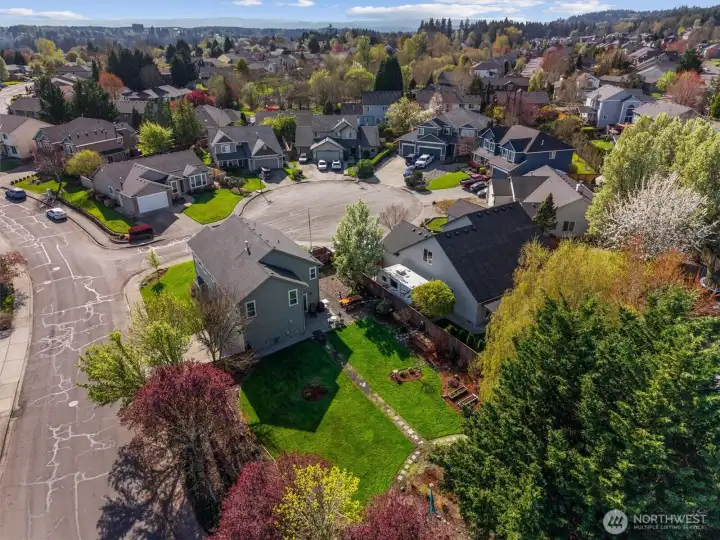 Beautiful, unique 3 bedroom, 2.5 bath home tucked back into La Center's fabulous Southview Heights neighborhood. Dramatic high ceilings and picture windows flood the living areas with light. The massive .27 acre yard, on a cul-de-sac, features raised garden beds, beautiful mature landscaping, and large shed! With new quartz countertops and ss appliances, new HVAC, and newer paint, this home is move in ready! Walk to Heritage Park and Breeze Creek trail. Minutes from I-5, Ilani, and excellent schools.
