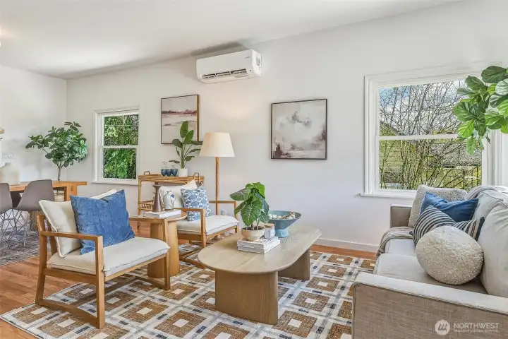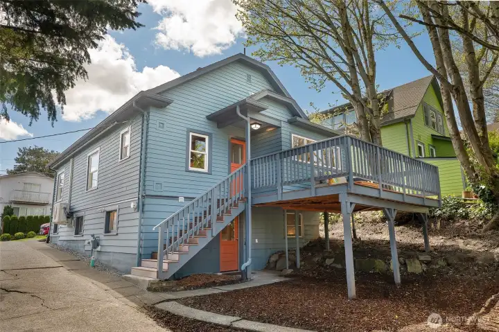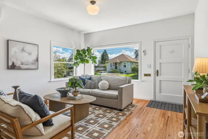 Welcome to this lovingly restored Craftsman bungalow in the heart of Hillman City. Gleaming hardwoods, refreshed bathrooms, and updated systems — including mini-splits set the tone for living in a timeless package. The main level impresses with 9-foot ceilings, tons of natural light, a seamless living and dining flow, beautifully appointed kitchen with new appliances, & two spacious bedrooms and full bath. The lower fully finished level has a large family room, third bedroom, and ¾ bath that provide flexible space for guests, work, or play. Already plumbed for a kitchen, it's primed for an ADU conversion and the rental income opportunity that comes with it. Outside, a sun-drenched deck overlooks mature landscaping with lovely territorial views toward Columbia City, while the private rear yard offers room to garden and play. Fabulous location, just steps from The Flour Box, Twilight, Archipelago, Delish, and the full vibrancy of Hillman City.