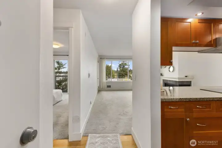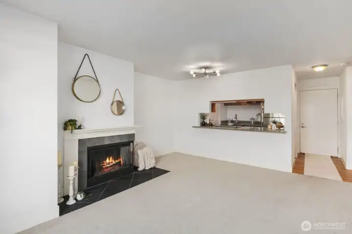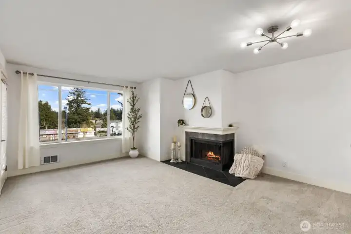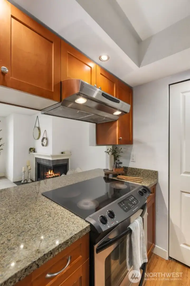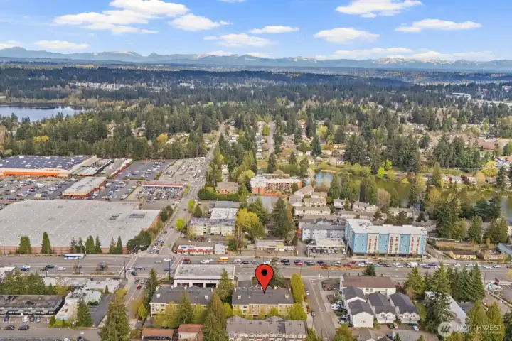 Lock in your lifestyle at this move-in-ready 1BD/1BA condo in the heart of Shoreline. Set on the 2nd level with a private deck and cozy fireplace, this unit feels like home from the moment you walk in... bright natural lighting, granite counters, stainless appliances, and an in-unit washer/dryer included plus new hot water heater. Storage unit on first floor, reserved covered parking + visitor parking, and a secured building with gated entry give you everything you need to live simply and well. Strong community, and a location that makes daily life genuinely easy to go anywhere at any moment. Costco and Home Depot a block away... Aurora Village Transit Center nearby, Edmonds Ferry and quick freeway access in every direction. If you're a first time buyer, this one checks all the boxes.