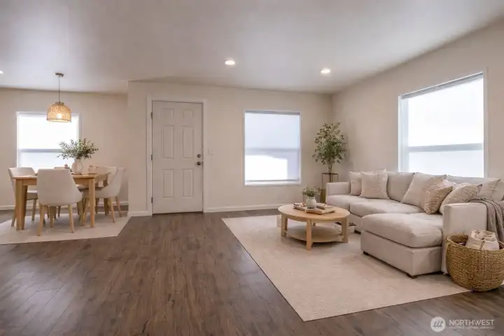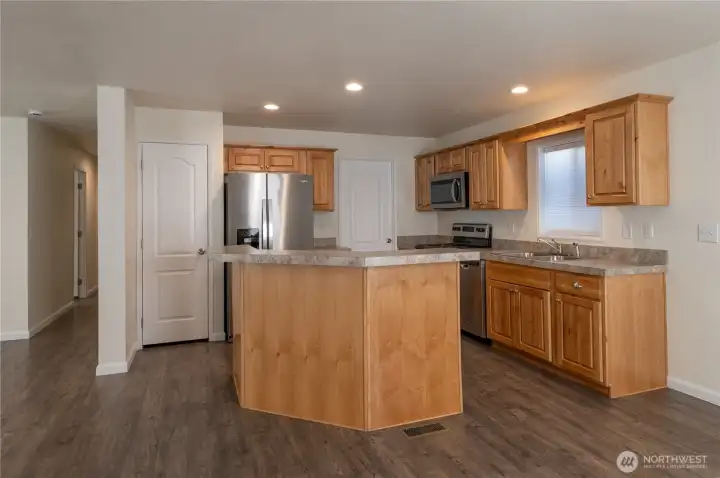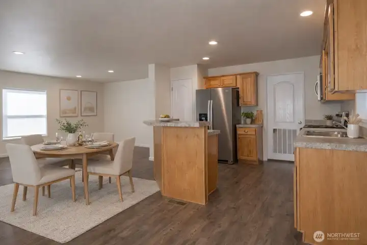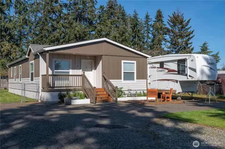 Beautifully maintained 2022 manufactured home offering modern comfort and easy living in a quiet neighborhood just minutes from downtown Sequim. This Energy Star–rated home combines efficiency with a bright, welcoming feel in a highly convenient location. Situated on a 0.2-acre lot, the property features a thoughtfully landscaped backyard with mature plantings and established thornless blackberry bushes—perfect for gardening and outdoor enjoyment. Interior highlights include an open-concept living room and kitchen with abundant natural light, plus a dedicated dining area just off the kitchen for everyday living and entertaining. The home offers 2 bedrooms and 2 bathrooms, plus a bonus office ideal for remote work or flexible use. The spacious primary suite features an ensuite bath and walk-in closet. A separate utility/laundry room adds everyday functionality. Exterior amenities include a fully fenced yard, paved blacktop driveway, ample off-street parking, and RV parking with hookups. A large barn-style storage shed provides excellent storage or workspace, while a private fire pit area creates an inviting outdoor retreat. High-speed internet available, with convenient access to shopping, dining, medical services, and recreational amenities nearby.