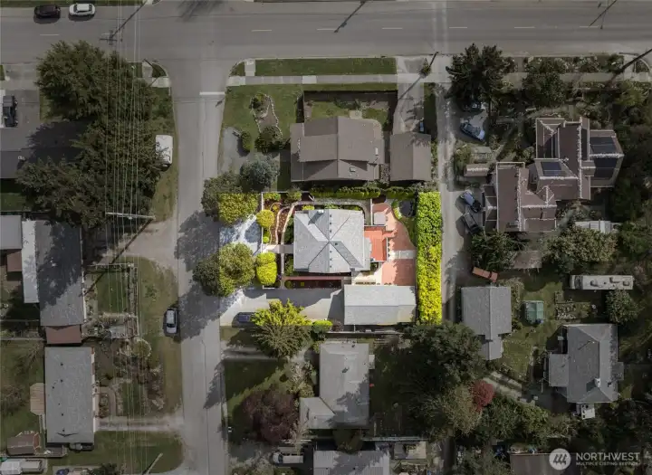 So much off street parking...Garage has been enclosed for large shop but could be converted back to 2 car garage...