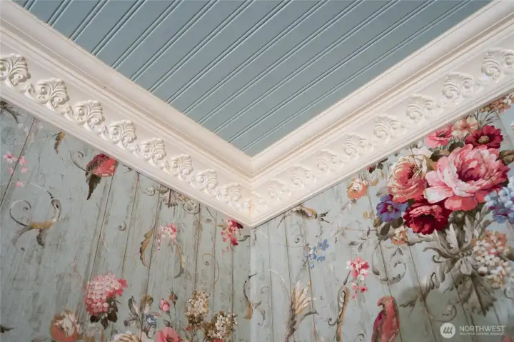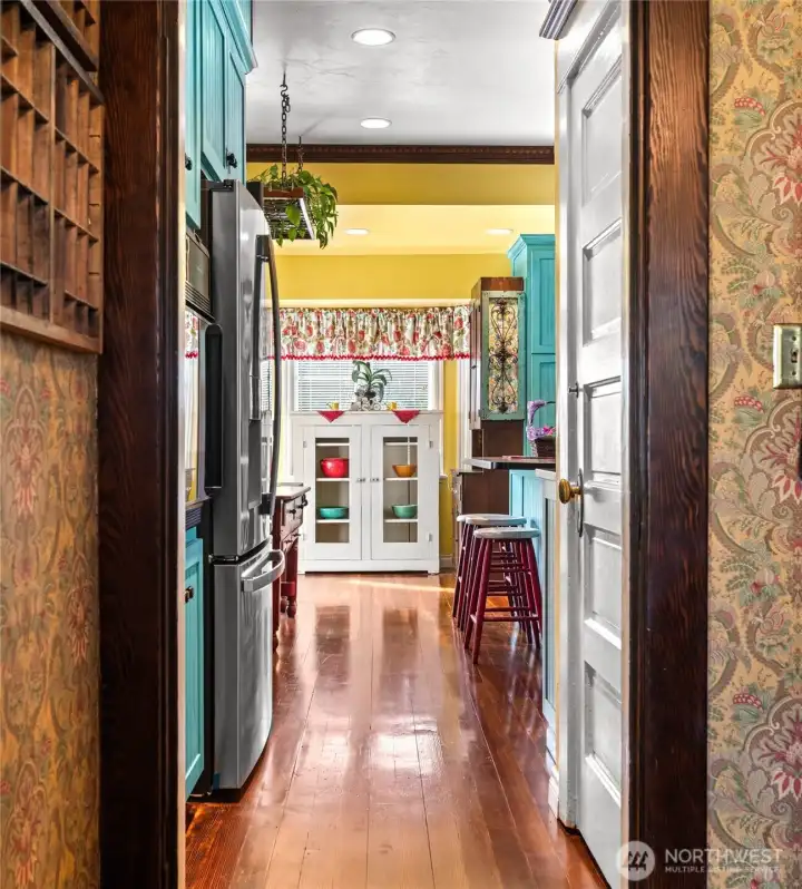 Sliding doors separate the entry of the living room...exquisite woodwork throughout...