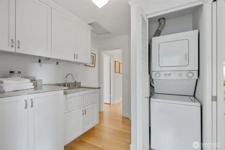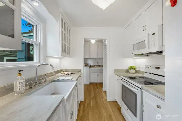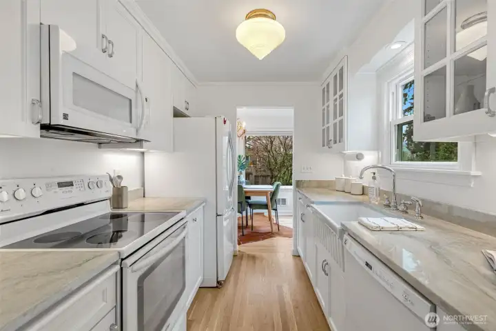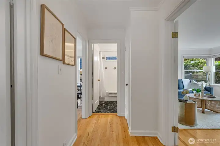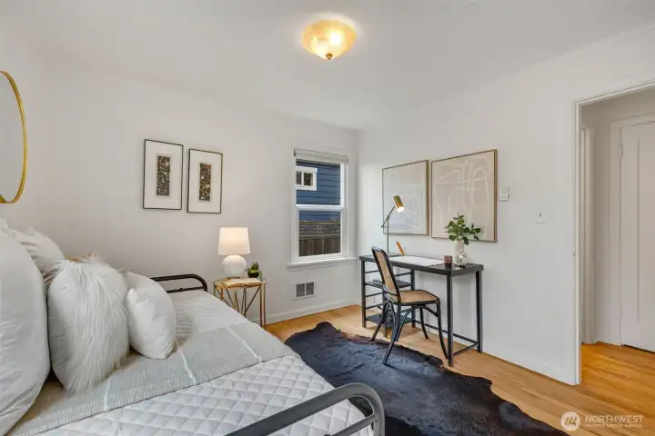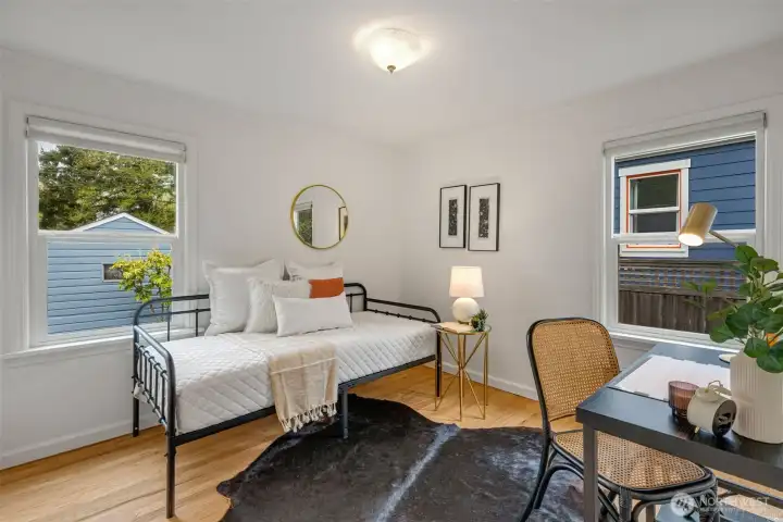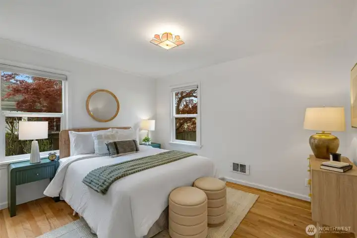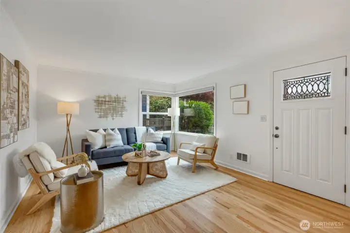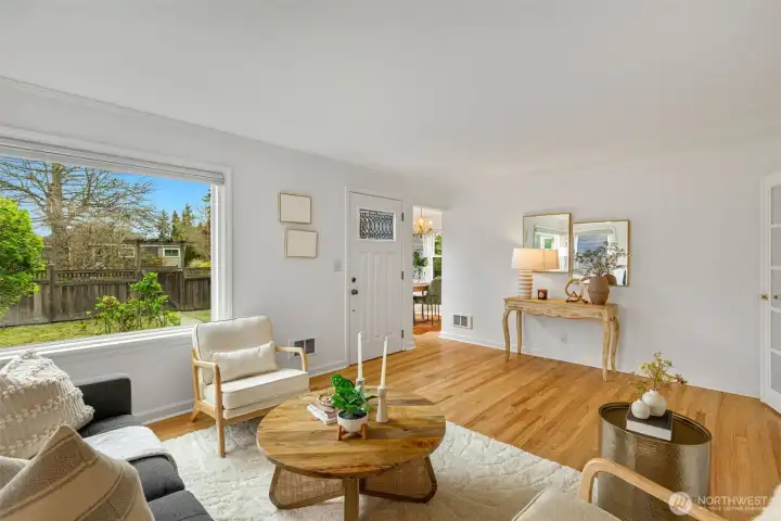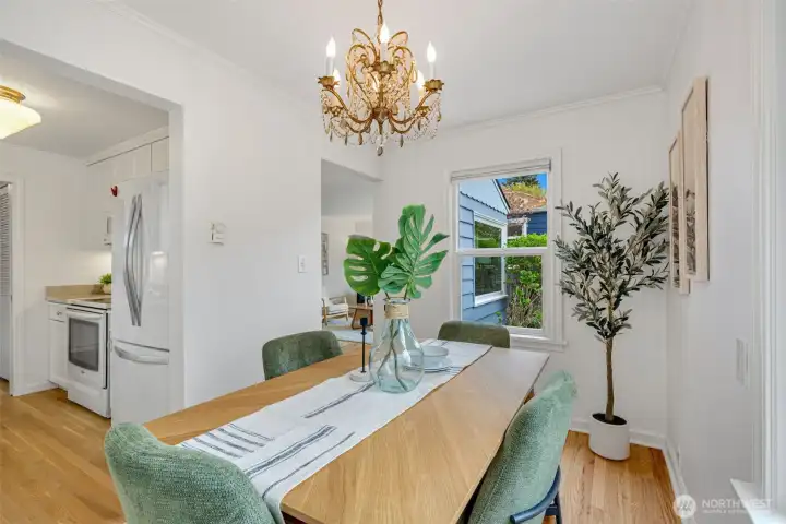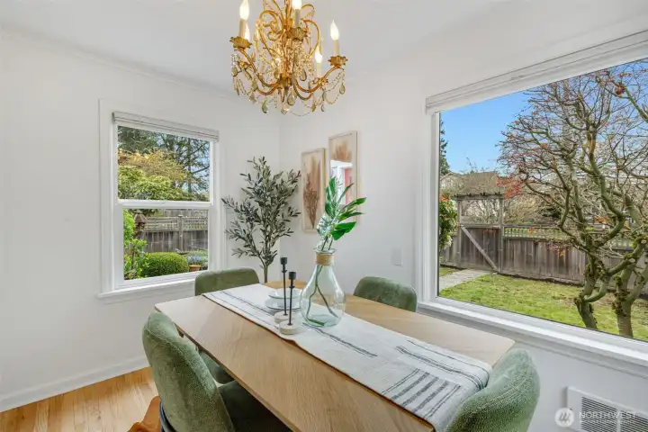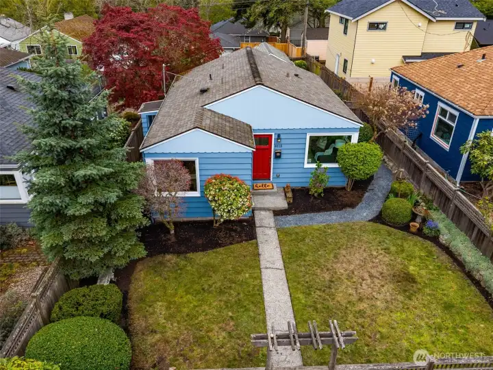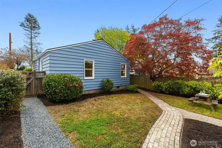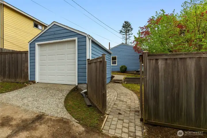 This 1941 original quietly and confidently delivers the perfect formula: period charm paired with updates in all the right places. One-level living keeps everything easy; no stairs, no friction…just smooth flow every day. Two bedrooms, one bathroom and a layout that somehow lives bigger than its footprint, this is efficiency without sacrificing vibe. Warm refinished hardwood floors are underfoot. A darling updated kitchen with stone countertops and clean finishes awaits. Everything – like convenient adjacent pantry/laundry – is on-point. A happy formal dining space and living room with large east-facing windows are great spaces for gathering your people. Step outside to relax and dream; serenity with potential. Fully fenced, the front and back are dialed with landscaping that is intentional without being fussy. You'll immediately notice the privacy and how sunlight falls just perfectly throughout the day. The detached garage and alley access inspire more than just parking; they hint at upside as you explore the possibility of a larger garage or DADU. All of this in Westwood; close to Lincoln Park for trees and fresh sea breezes, near the Vashon Island ferry when you want to disappear for a minute, and around the corner from Realfine Coffee when your morning needs a jumpstart. Transit is easy, life is simple, and everything you love about the great PNW is right where you want it. Come take a look!