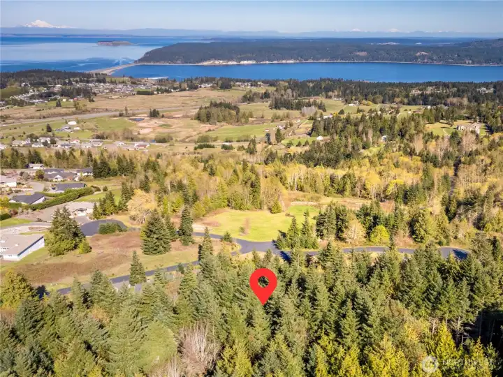 BIG water views and elbow room in one of Sequim's finest neighborhoods. Set up above the corner of High View Way and Elk Pass Rd this is an absolutely ideal location for your custom home. Paved roads, PUD power & water, and Sequim City sewer serve the Bell Gates neighborhood of absolutely beautiful estate homes. Located on the NE side of the famous, "Bell Hill". The rare combination of privacy, paved roadways & paid utilities all within a five minute drive to the amenities of downtown Sequim. PUD water hookup fee & Sequim city sewer hookup fees are paid & included in the price.