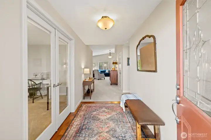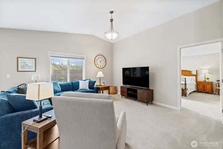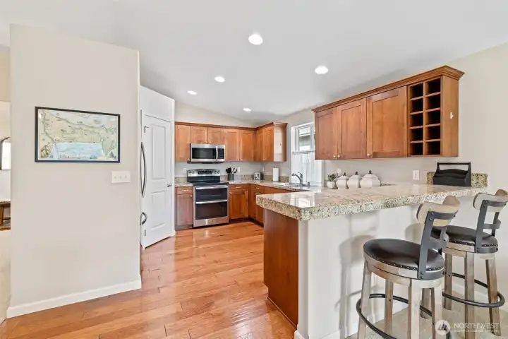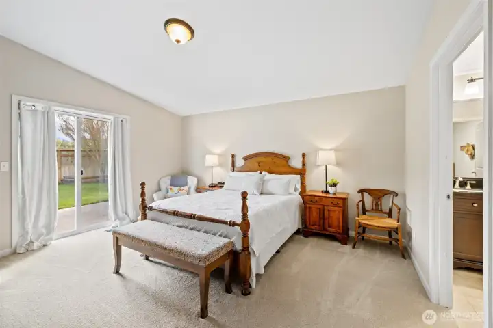Beautiful 3-bedroom, 2-bath home in the highly desirable Jenny’s Meadow neighborhood! Offering 1,638 sq ft of comfortable living, this thoughtfully designed home features zero-entry access and is ideally located on a quiet cul-de-sac. Enjoy stunning mountain views and convenient access to the nearby Olympic Discovery Trail, including the scenic path to the Railroad Bridge. Inside, you’ll find vaulted ceilings, hardwood floors, and fresh interior paint, along with a spacious kitchen featuring granite countertops, stainless steel appliances, double oven, pantry, Soft close custom cabinets with pullouts, and breakfast bar—perfect for everyday living and entertaining. The primary suite includes a walk-in closet for added comfort and convenience. Step outside to a back patio surrounded by beautifully landscaped grounds including water feature, creating a peaceful outdoor retreat. Close proximity to shopping and restaurants. This home offers the perfect blend of location, comfort, and style—don’t miss it!