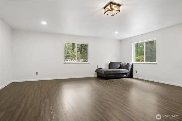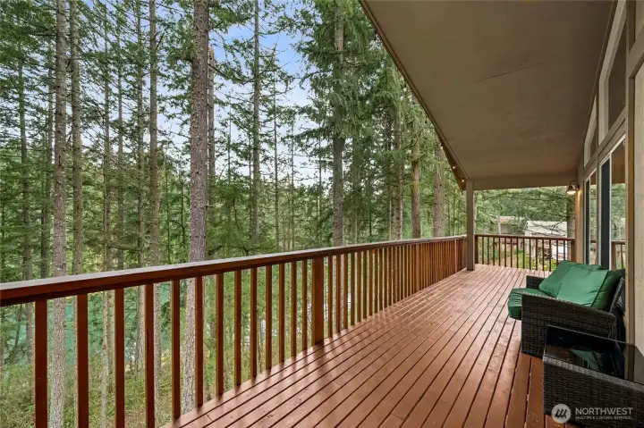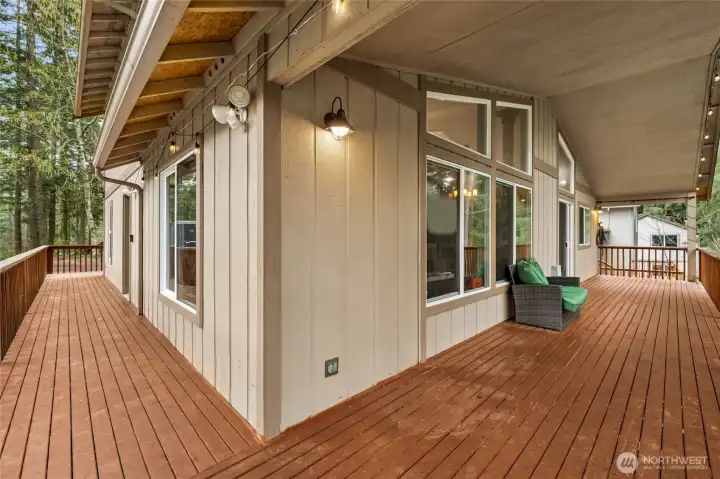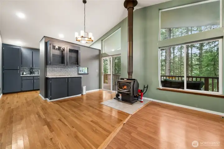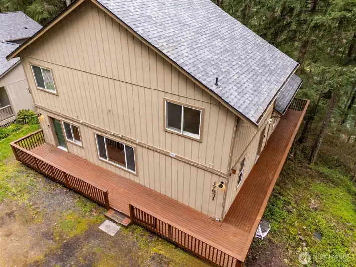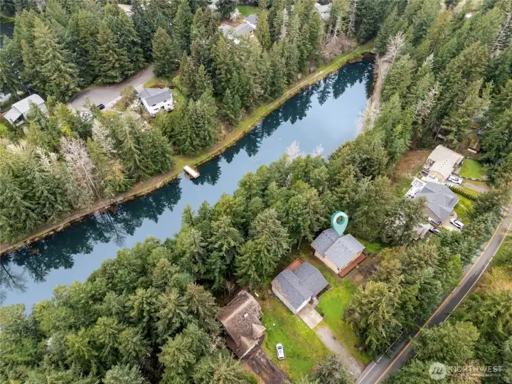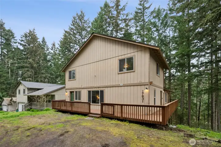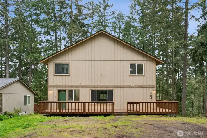 Seclusion and serenity in the gated community of Clearwood! This 2-bedroom, 2.25-bath home is wrapped with a freshly painted deck that offers peaceful lake views from the main floor. This freshly painted cabin-style home features vaulted ceilings, new carpet, a private kitchen, wood stove, and an extra-large bonus room that can easily support two bed sets. Additional features include a 50 amp generator hookup, hot tub hookup, double-pane windows, ceiling fans, and walk-in closets. Enjoy the Clearwood amenities such as three lakes for fishing, swimming, and boating, over 13 miles of trails, boat launches, a community clubhouse with an in-ground pool and hot tub, athletic courts, BBQ awnings, and play parks all around. Close to commerce, restaurants and JBLM's East Gate.