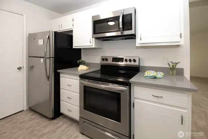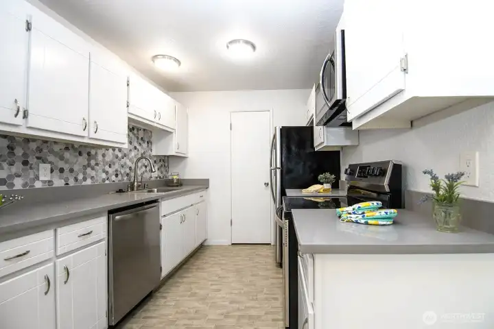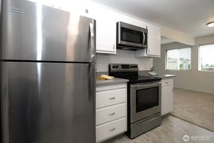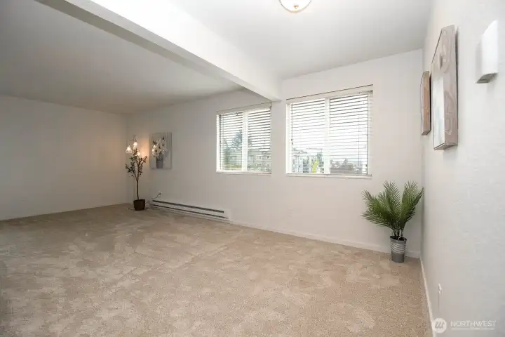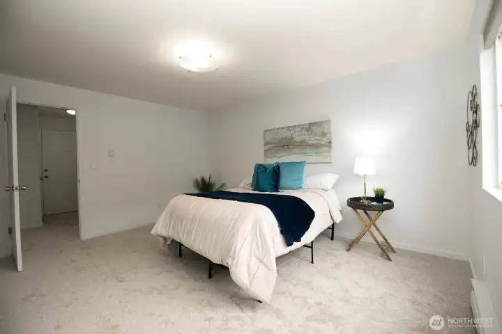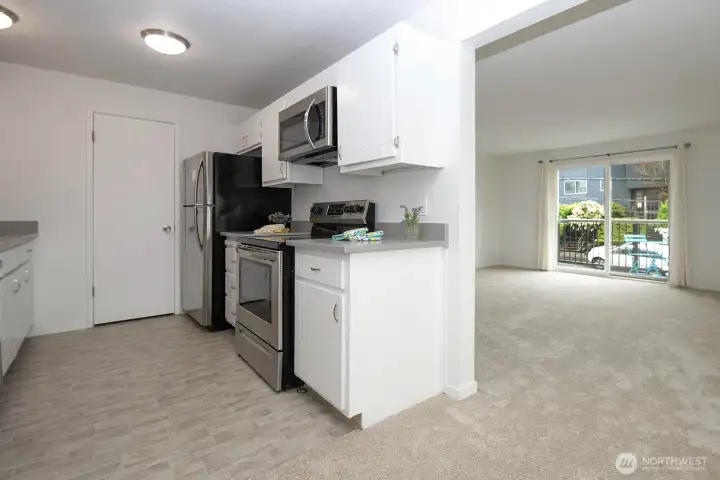 In a highly sought-after Greenwood spot, this spacious and well-kept 1-bedroom end unit is close to all the best of Greenwood and North Seattle. Fresh paint and brand-new carpet give it a clean, updated feel, while big windows flood the space with natural light. The oversized bedroom offers plenty of room plus a large 3-door closet. The kitchen features quartz counters, stainless steel appliances, and a stylish backsplash. Community parking is conveniently located at the back, with a private, easy-access entrance. On a major bus line, you’ll have quick access to Downtown, Ballard, Green Lake, Carkeek Park, and charming nearby coffee shops and pubs, with Trader Joe’s and Fred Meyer just a short walk away. This home and community are ready to win your heart!