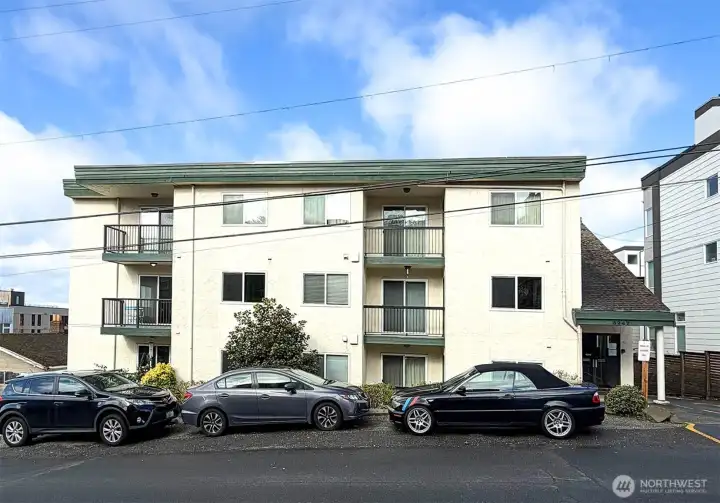 Designated parking space #13 in back of building. Another entrance to the building is also in this area
