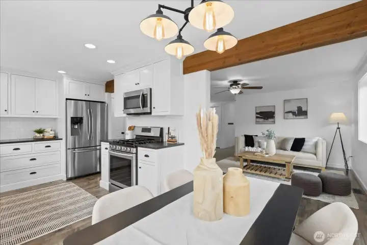 Enjoy the seamless connection between the kitchen, dining area, and living room.