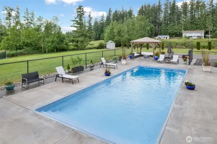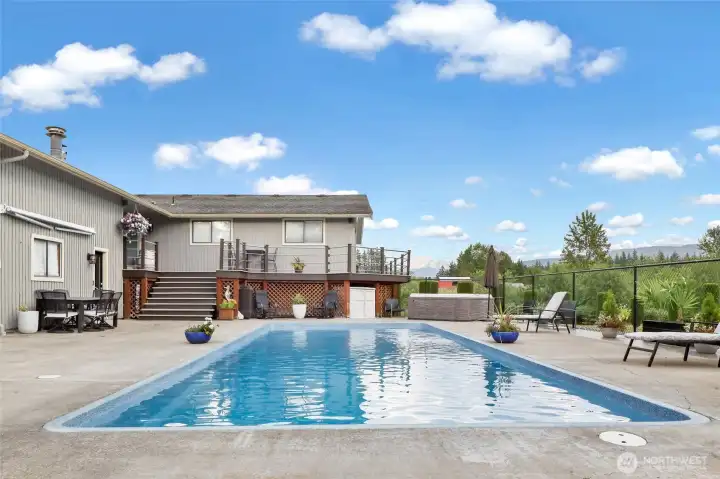 A true mid-county retreat with an unbeatable Mt. Baker view! Lounge beside the stunning 40’ x 16’ pool while gazing at snow-capped peaks, or unwind in a hammock next to a peaceful seasonal creek; this just shy of 2-acre property delivers the ultimate country lifestyle. The beautifully updated 3 bedroom, 3 bath home features a remodeled kitchen, stylishly renovated bathrooms, a sprawling deck, and an incredible outdoor entertaining space. Downstairs boasts many opportunities for separate living/ADU potential, gym, office, den, playroom or general flex space. All this, just 12 minutes to I-5 or Barkley Village and under 30 minutes to BP. Country charm meets everyday convenience, don’t miss this one!