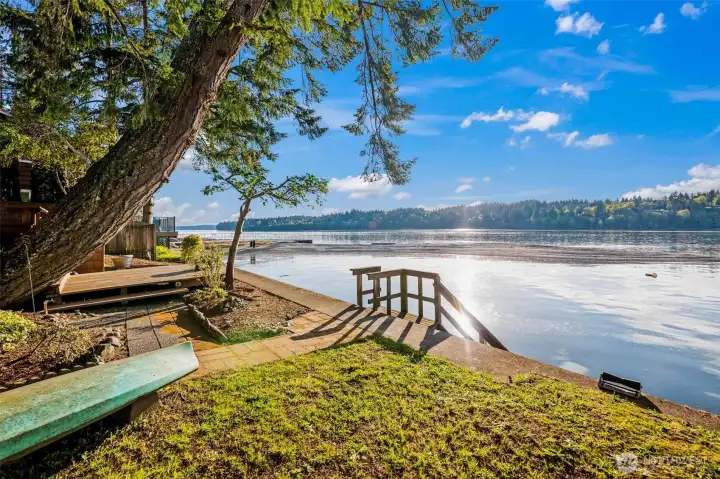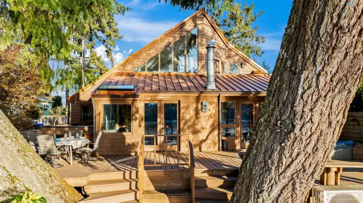 Situated with western exposure on coveted Steamboat Island, this beachfront getaway is the perfect place to unwind and relax. Featuring a 30' indoor lap pool, direct beach access, and an ADU over the garage perfect for guests or extended living, you will feel like you're on vacation every day you spend here. The exposed log supports, wood-wrapped windows, and wide opening French doors leading to the multi-level deck at the water's edge give the feeling of living at one with nature, while wrapping you in comfort with a newer, whisper-quiet Mitsubishi heat pump system. With zero-steps from the carport all the way to the waterside deck, and all main living elements on the main floor, this home flows smoothly for occupants of all age. Productive Totten Inlet tidelands provide gourmet oysters, clams and mussels at your doorstep. A private buoy tucked behind a protective sandspit extends the enjoyment onto the waters of beautiful Puget Sound. Are you ready to get away to Steamboat Island?