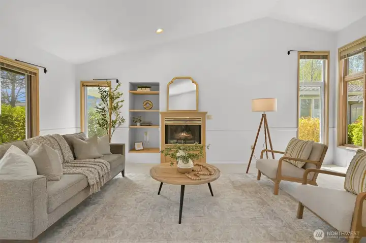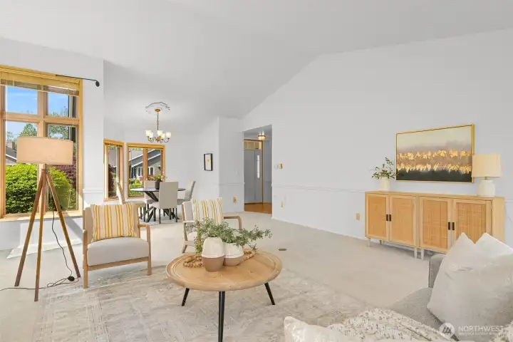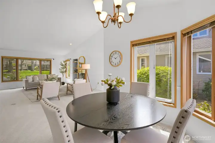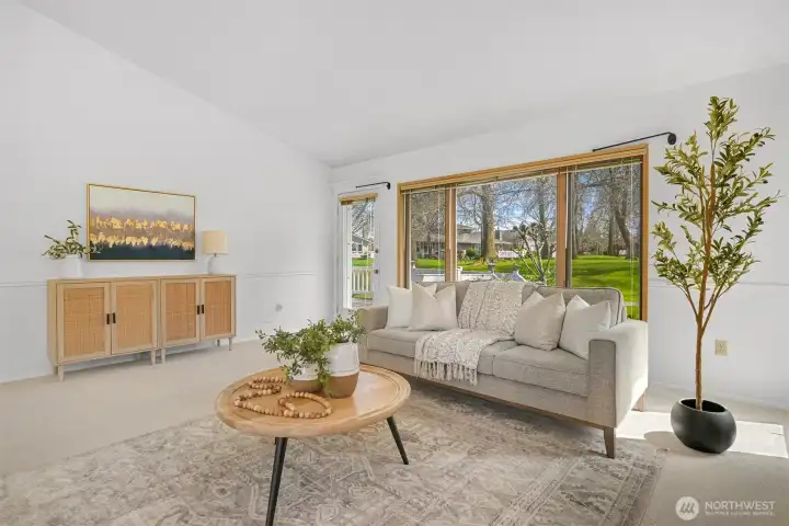 Nestled in the heart of Bellingham's vibrant Cordata neighborhood, the Village at Cordata is the premier 55+ community where serenity meets convenience. Surrounded by lush greenery and meandering walking trails, this charming enclave offers the perfect blend of traditional neighborhood warmth and hassle-free condominium living. This home boasts one of the largest single-level floor plans in the community, freshly painted with brand-new carpeting for a move-in-ready experience. The thoughtful design includes vaulted ceilings in the living room, a cozy kitchen with a breakfast nook, space for formal dining, and a private patio that opens to a grassy yard. With an attached two-car garage and minimal steps to the front entry, accessibility and comfort are effortlessly combined. Beyond your home, the Village at Cordata offers a lifestyle enriched by exceptional amenities, including a clubhouse with a game room, an indoor pool, and a calendar full of year-round activities. The meticulously maintained grounds are perfectly complemented by the community’s unbeatable location, just moments from shopping, services, transit, and major highways. Here, every detail is designed to make daily living as enjoyable and seamless as possible.