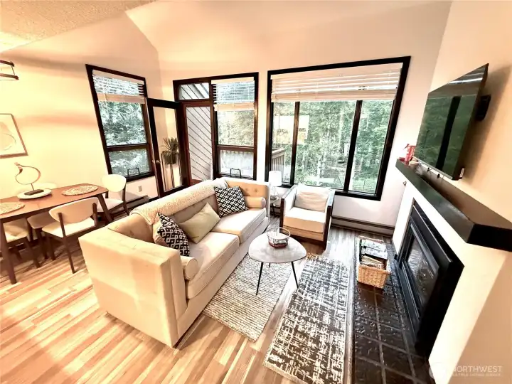 Welcome to Paradise on 20 acres of Fun, Larger unit in highly rated AIRBNB short term rental approved at Snowater, Fully furnished in best building closest to Pool and Rec Center, This bright clean one bedroom plus additional large bonus room & two full baths, Don't miss the river from the sunny western exposure private deck. Picture yourself relaxing on the deck, listening to the low bank waterfront river in the background or bird watching the alpenglow on Church Mountain in the background. Not only a premium escape, but an income property as well. Snowater features 2 indoor pools in two separate clubhouses and is just a 30 minute cruise to Mount Baker. Located in the Captain Jack building, this top floor penthouse has upgrades including a new roof, chimney, siding, and water resistant LVP floors! Bring the whole enterouge, RV, Toys, and every animal to this bliss and tranquility. Snowater features Snowater maintains 3 Common buildings, open to all owners and guests from 8:00 am to 10:00 pm: a Heritage Log Cabin and 2 recreation buildings, which contain: 2 Heated Indoor Pools w Jacuzzis, Sauna 4 Multi-purpose indoor courts for squash, racquetball, pickleball, basketball, soccer, Fitness Room, Games Rooms with billiards Two Courts lined for tennis and pickleball, Childrens Playground with adjoining Sports Court for basketball, ball hockey and soccer Pathways for walking along our picturesque River Walk which leads to the Horseshoe Bend Trail ,Grassy Playfield