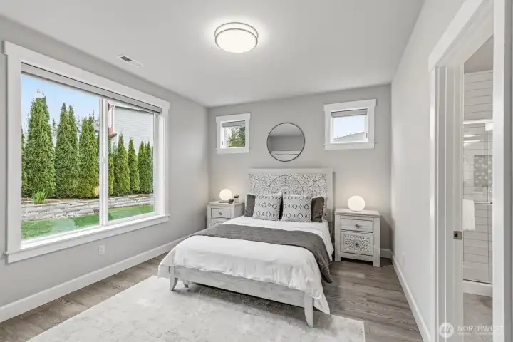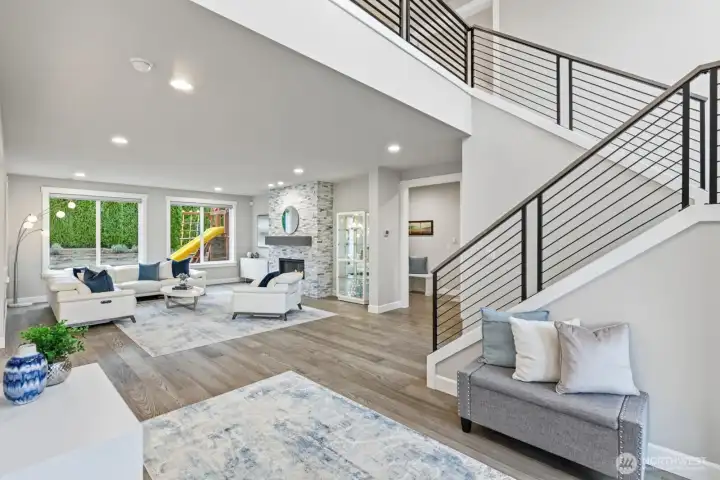 Just listed! Immaculate like new home mountain view home. Prime location just a few blocks to the Light Rail & Alderwood Mall. Enjoy 3,732sf of spacious luxury living. Beautifully situated on the 2nd largest lot in the highly sought after Heritage Estates community. Over $200k of designer upgrades make this impeccable home a dream come true! From dramatic vaulted ceilings that welcomes you home, to designer chandeliers & elegant window blinds to gorgeous hardwoods on both floors and A/C, this home truly has it all. The main floor offers a luxury Guest bedroom w/private bath, a lg Den with French doors for the ideal home office, handy powder bath and huge living room for relaxing around the oversized gas fireplace. The stunning entertainment size kitchen will make every meal a delight w/abundance of custom cabinets, massive island w/modern pendant lights & walk in pantry. The spacious dining room leads to a lg covered patio w/a gas fireplace for year-round outdoor enjoyment! Upstairs, French doors invite you to the exquisite Primary Ensuite complete w/a sitting area & spa inspired bath w/custom WIC. A huge Bonus room captures Mt Rainier & Cascade views. 4 total upper bedrooms & deluxe laundry room offers space for everyone. Outside, the huge yard awaits good times w/beautiful landscaping, irrigation & mtn views! Ultimate 3-car garage w/lofted storage. Outstanding location just 1 light away from I-5, shops, groceries, parks & Rec Center w/pool. Edmonds School District!