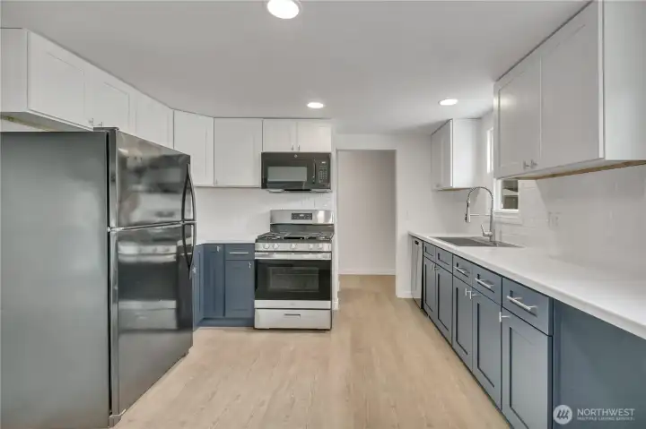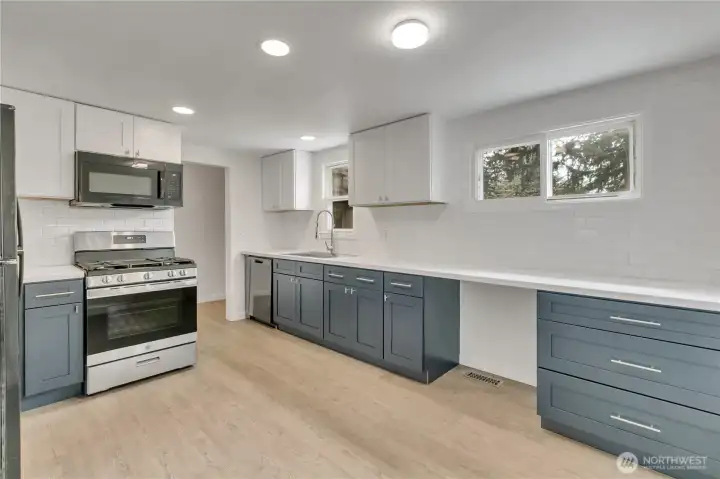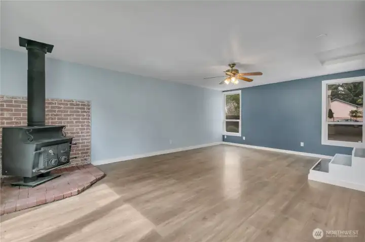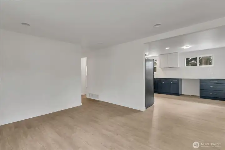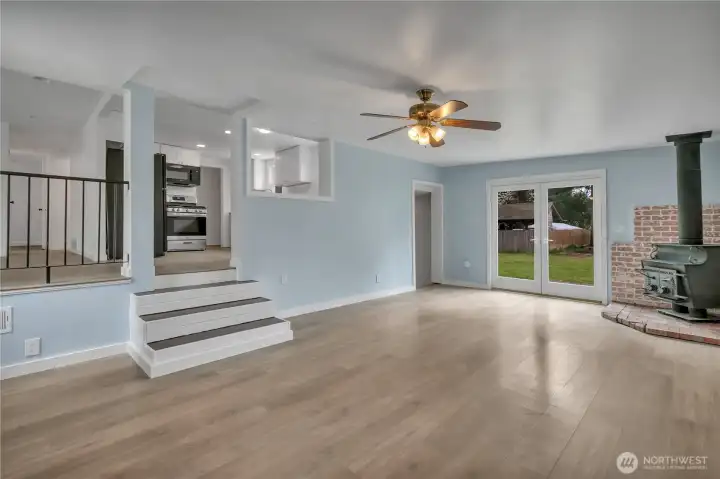 Super close-in yet tucked away for privacy, this fully fenced 3-bed, 1.75 bath home offers 1,880 sqft of space, comfort & versatility on a generous .31-acre lot—with RV parking. Enjoy multiple living spaces including living room, welcoming family room with a cozy wood stove, & separate rec room—perfect for entertaining, relaxing or flexible use. New French doors open to multiple outdoor spaces, including 2 decks & a patio, creating ideal spots to unwind or host gatherings. The home features 2 beds & full bath on the main floor, with 1 bed & attached 3/4 bath located in the fully finished basement—ideal for guests, extended living or added privacy. The updated kitchen features new cabinets, countertops, gas range, microwave, farmhouse sink & dishwasher. New LPV flooring flows through much of the home, complemented by fresh interior paint throughout. The main floor bath has been recently remodeled with new lighting, vanity, toilet, plumbing fixtures, & trim. Just steps from North SeaTac Park & scenic trails, outdoor recreation is right at your doorstep. The expansive backyard provides endless possibilities for gardening, play, or future expansion. Additional highlights include a circular driveway & fully secured lot. Major updates within the last 5 years include a hot water tank, forced air A/C, roof with new gutters, updated bathroom plumbing, washer/dryer & concrete patio. Conveniently located near transit & the airport, this home combines accessibility with peaceful living.