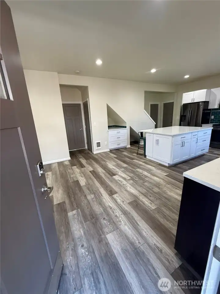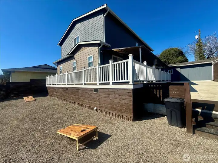 Looking for a multi-generational setup? This 2021 full-rebuild has a layout that truly works for modern life, including TWO Primary Suites & no HOA! Step inside to 2484 sq ft., tall ceilings & an open concept. The kitchen is a showstopper, starring a massive island with storage & black stainless appliances. A clever use of space includes a built-in nook tucked perfectly under the staircase, along with a possible pet bed area, these special features await your personalization, perhaps a coffee station?. With a walk-in pantry, dedicated dining space, & seamless flow into the living room, you’ll never be separated from the action. The first level features a full primary suite, ideal for guests, in-laws, or those looking to avoid stairs. Upstairs, the second level opens up with dramatic vaulted ceilings, housing the second primary suite, an additional large bedroom, family room & an office area. The LVP flooring throughout features a mix of cool & warm tones, ensuring your existing furniture will look right at home. Custom blinds, new plush carpet & fresh paint provide a turn-key experience for the new owners. Enjoy the outdoor living on the wrap around deck & expansive patio while having peace of mind knowing the major components of this 4 bedroom 3 bath home are only 5 years old. Walkability to local businesses & an easy commute location off of I5 make this property a must see! Current road resurfacing & sidewalk additions by Tacoma near this home will be the cherry on top.