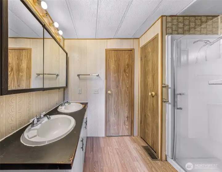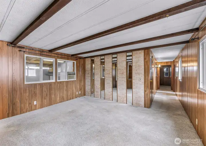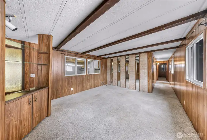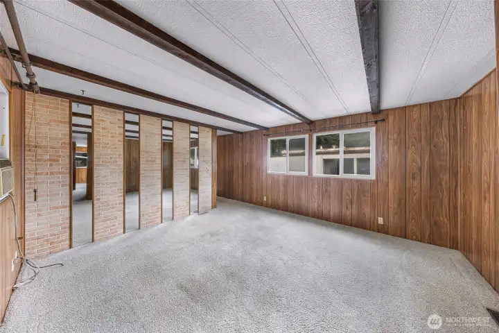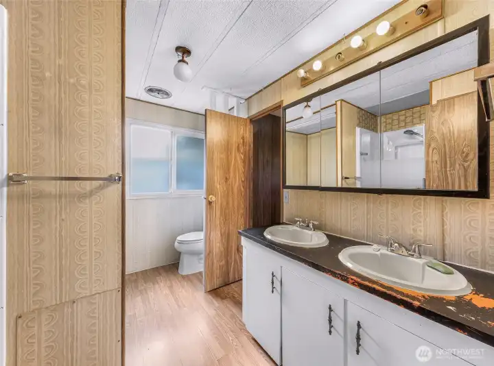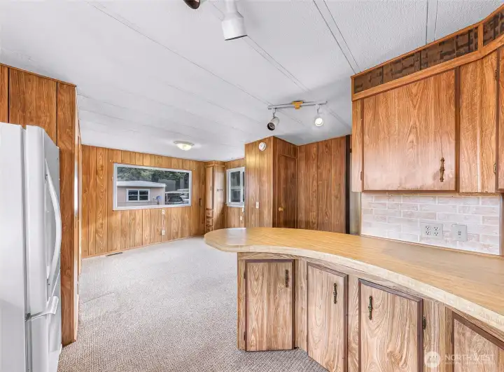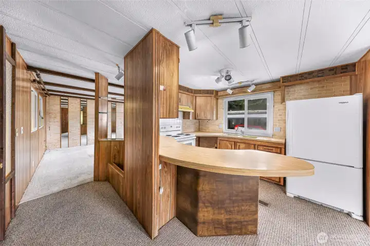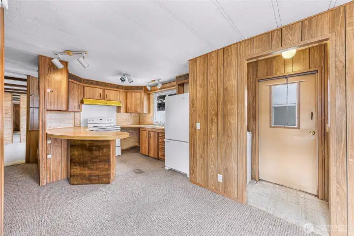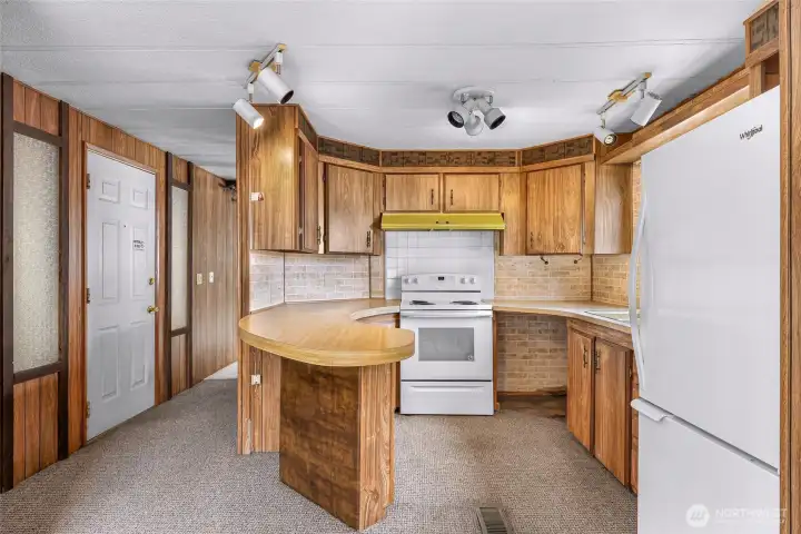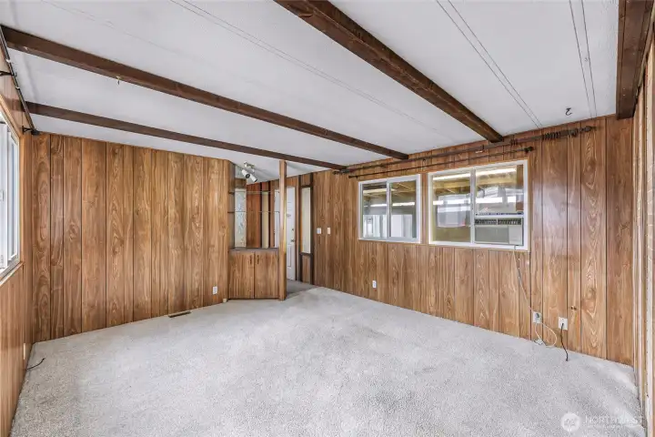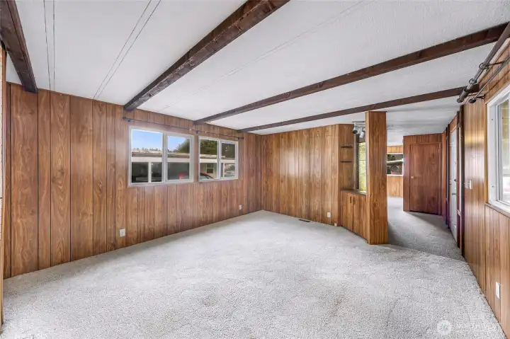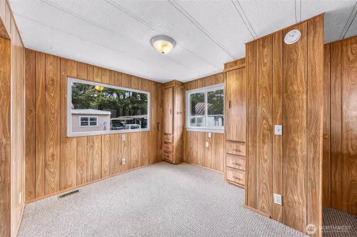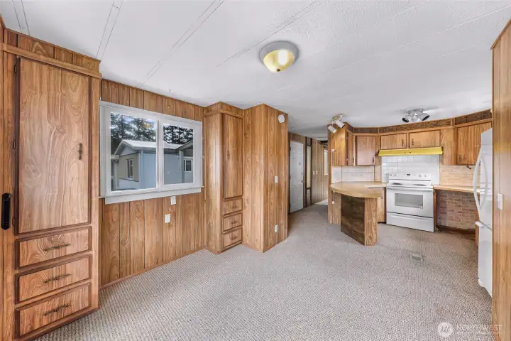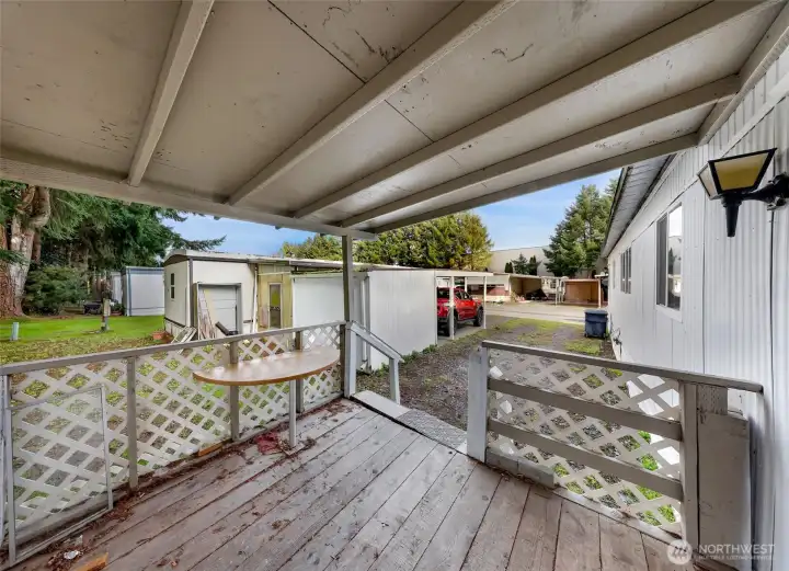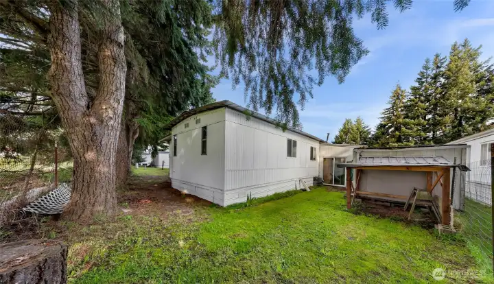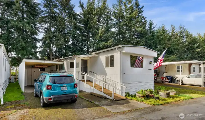 Charming and cozy, 2 bedroom, 1 bath home nestled in a quiet, established 55+, mobile home park community. This vintage single-wide offers a large living area, functional kitchen with a small dining area as well as a comfortable primary bedroom with adjoining bathroom. All appliances included. Enjoy affordable living with low maintenance featuring a covered porch, carport and lots of storage with convenient access to local amenities and I-5. "Sold As Is".