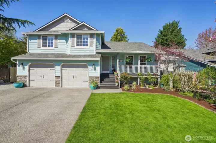 AMAZING PLACE TO CALL HOME - PICTURE PERFECT & READY FOR SUMMER! Tastefully renovated and meticulously maintained. Turn Key Move-In Ready. Charming Front Porch greets you on this Tri-Level Home. Vaulted Main Floor - Formal Dining Rm, Open Granite Kitchen w/Eating Bar & Casual Dining area. Great Room Design w/Custom Stonework & Mantel surrounding the cozy Gas FP. Airy Primary Ensuite w/Spa Inspired Bath and Walk-In Closet. You'll find 3 more Bedrooms and Full Bath upstairs as well. The Lower Level is the Family Room, Half Bath & Laundry. Next the PRIVATE OUTDOOR OASIS. Unwind and relax in the Hottub or gather under the Garden Pavillion. This is a Gardeners delight. With No direct neighbors behind you, you feel miles away. Checkout the Cute Shed/Art Studio or a Detached Office maybe. There is even a weatherproof covered area with TV, projector, putting green and netting. Watch Movies or hone your Golf Skills. Oversized Garage and some RV Parking too. IT'S ALL HERE! YOU ARE GOING TO LOVE IT!!