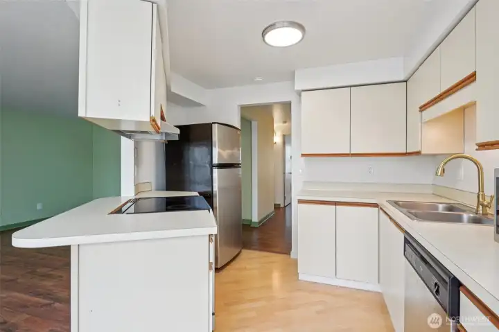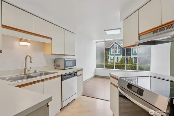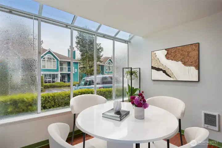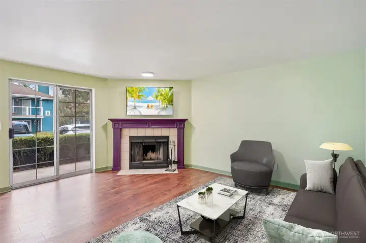 Charming ground-floor condo in Spruce Heights with 2 bedrooms and 2 full baths, featuring stylish updates throughout. The open layout includes a spacious kitchen, breakfast nook, dining area, and a large living room with a wood-burning fireplace. Both bedrooms offer privacy with their own full bathrooms. Bright natural light fills the home through abundant windows, including solarium-style windows. Recent upgrades include fresh paint, modern lighting, and durable waterproof flooring. Clean and well-maintained with ample storage. Prime location near shopping, parks, light rail, Costco, Boeing, Paine Field, and I-5. No rental cap, dedicated parking directly in front, and a private patio for relaxing or entertaining.