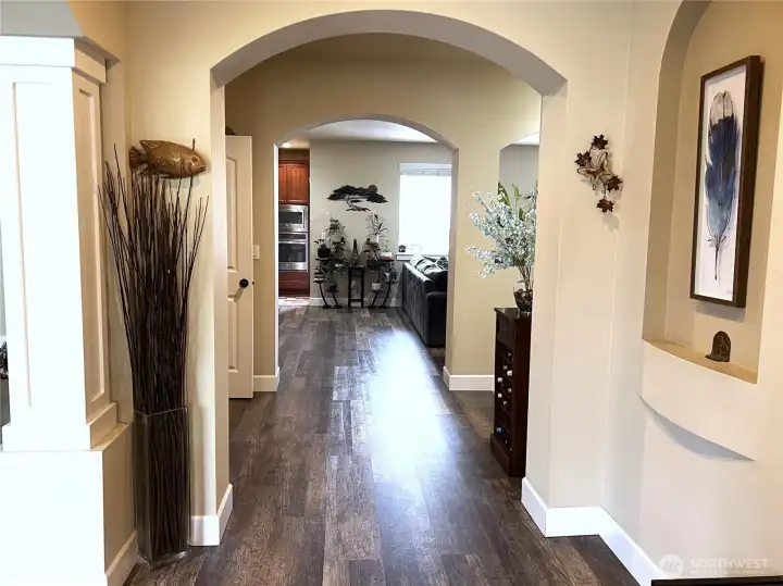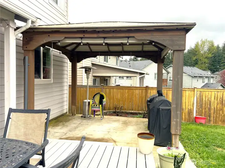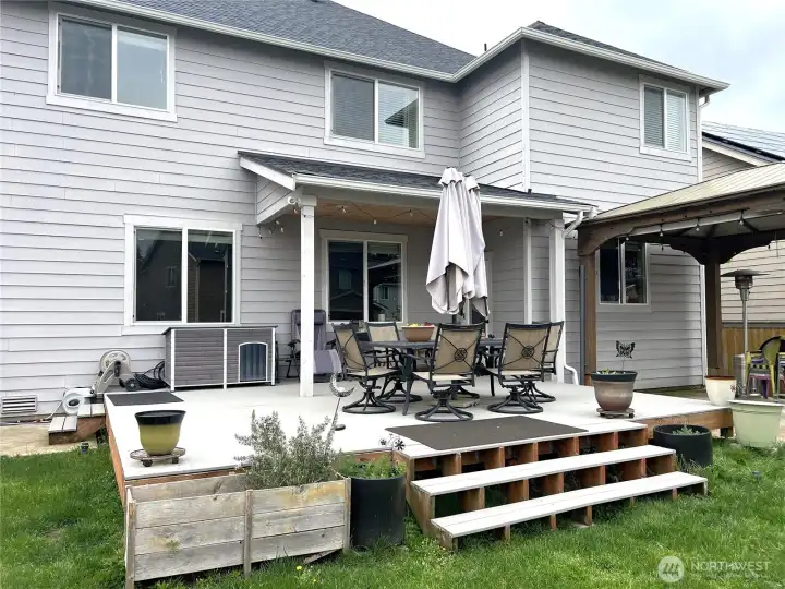 This beautifully maintained home in Tehaleh offers 4 bedrooms and 2.5 baths, combining comfort and style throughout. The inviting front entry leads into a stunning kitchen featuring a gas range with a dedicated hood, a large counter-depth refrigerator, granite countertops, a spacious island with breakfast bar, and a generous walk-in pantry. The kitchen flows seamlessly into the expansive living room, complete with a cozy gas fireplace and elegant built-ins—perfect for entertaining guests or relaxing at home. Upstairs, you’ll find a luxurious primary suite with French door entry, a 5-piece ensuite bath, and a walk-in closet. Three additional bedrooms, a full bathroom, a versatile bonus room with TV mount, and a convenient upstairs laundry room complete the second floor. Step outside to a fully fenced backyard designed for enjoyment, featuring a large deck, gazebo, and firepit area—ideal for outdoor gatherings year-round