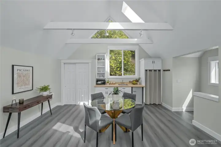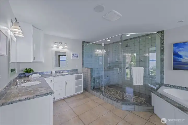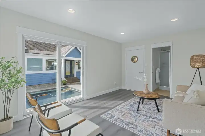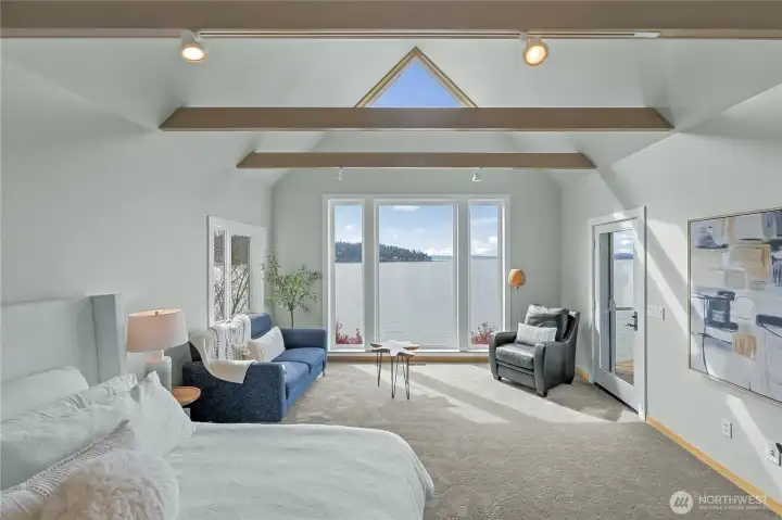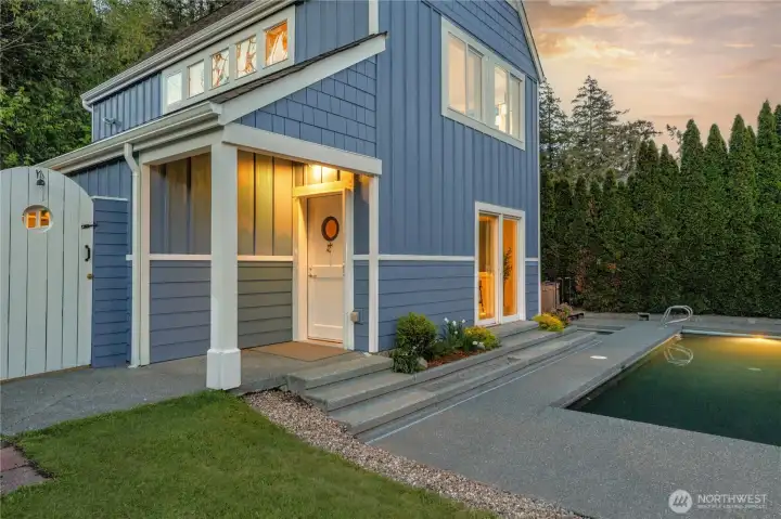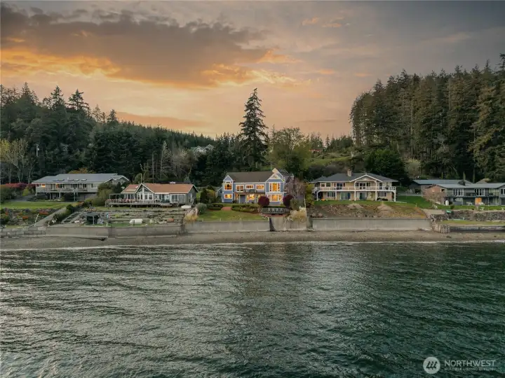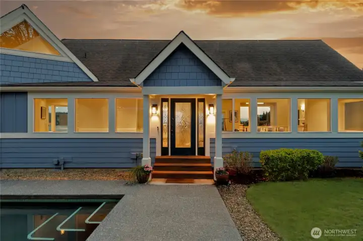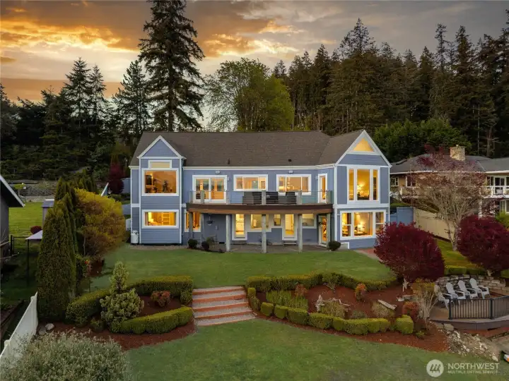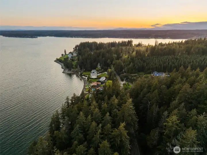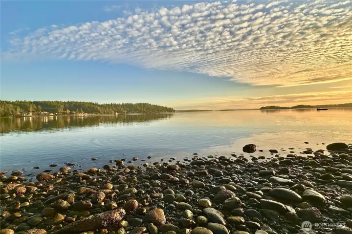 Waterfront retreat at the mouth of Rocky Bay with 90 feet of low-bank shoreline and true southern exposure, offering all-day natural light and expansive Puget Sound views from nearly every room. Soaring ceilings, hardwood floors, and an open-concept kitchen and living area flow seamlessly to multiple view decks, ideal for indoor-outdoor living. Nearly $100K in upgrades, including major systems, interior updates, and improvements to both the main home and detached guest house. Flexible layout with main-floor living, plus additional space for guests, remote work, or entertaining. Multiple view decks extend the living experience outdoors, making the water your everyday backdrop. Set on nearly half an acre with a pool, spa, private beach access, and detached guest quarters, perfect for both everyday living and hosting. Enjoy beach walks, wildlife sightings, and peaceful low-bank waterfront living in the Pacific Northwest. From long, relaxed walks on the beach with family and friends to quiet evenings watching the sunset, eagles overhead, and seals just offshore, don’t miss this rare opportunity to own a private slice of Pacific Northwest paradise.