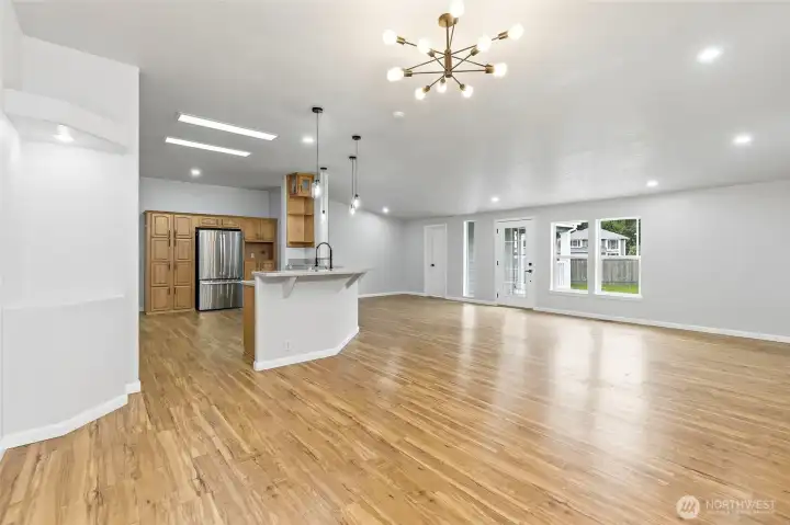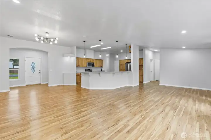 Fully renovated and move-in ready, this spacious 2006 home on its own lot offers exceptional value, flexibility, and room to grow. Featuring 5 bedrooms and 2.75 baths, the single-level layout is ideal for multi-generational living, shared households, or buyers needing space for a home office or guests. The expansive primary suite includes a private bath with double vanity, jetted soaking tub, and walk-in closet.The updated kitchen is the heart of the home, complete with new sink, hardware, generous pantry, and ample prep space, flowing seamlessly into oversized living and dining areas. Enjoy indoor-outdoor living with direct access to a wrap-around deck and patio—perfect for entertaining, summer BBQs, or relaxing in the fully usable backyard.Major upgrades include a new roof (2023), new water heater, fresh interior paint, and updated lighting throughout. A separate utility room with washer/dryer adds convenience, while the oversized attached garage offers high ceilings, storage, and flexible parking.Designed with accessibility in mind, including ramp entry and a large rear porch. VA & FHA financing welcomed. Ideally located near JBLM, major employers, shopping, dining, and commuter routes with easy access to Tacoma and Lakewood.A rare opportunity to own a fully updated home with land, space, and versatility—schedule your showing today!