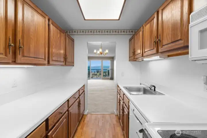 Rare Top Floor Condo with panoramic sound and mountain views. Bring your designer and your vision to this one-of-a-kind top floor unit. Do a little or a lot. With a sprawling open layout, two Bedroom and two bathrooms and a sunset-facing deck, wood burning fireplace, 2 storage areas, dedicated parking and a lower level party/meeting room. This is a rare chance to build instant equity and create a luxury Top Floor unit at a fraction of the cost of new construction and live in something special. Located in the Alaska Junction shopping and dining district. Close to Alki Beach and great freeway access.