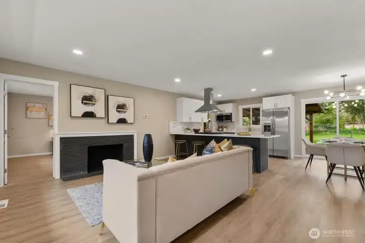 Discover the perfect blend of style, comfort, and convenience in this lovingly renovated Lakewood rambler standout. Every inch of this home has been thoughtfully updated, featuring a brand-new kitchen with quartz counters, open concept floor plan with fireplace, new vinyl plank flooring, updated lighting, remodeled bathrooms with stylish hardware, newly painted exterior, newer furnace, generator and much more offering true turnkey living. The primary suite offers a private retreat with en-suite bathroom. Set on a sprawling, level, fully fenced backyard on a .23-acre lot, ideal for pets, play, gardening, or entertaining. Enjoy RV parking, room for boats, trailers, or toys and two sheds providing tons of storage . Large custom built covered patio in a quiet neighborhood. Just a short walk to Fort Steilacoom Park, top-rated schools, and shopping, 3 miles to beaches, Chambers Bay Golf Course & Steilacoom Lake. Minutes to Joint Base Lewis-McChord. No HOA. This home delivers an unbeatable location and lifestyle. A rare opportunity to own a fully remodeled, pristine, and move-in ready home, come experience the charm and quality for yourself!