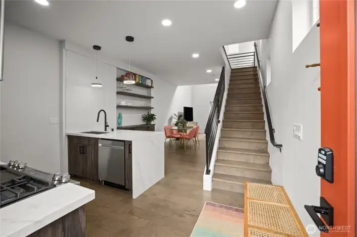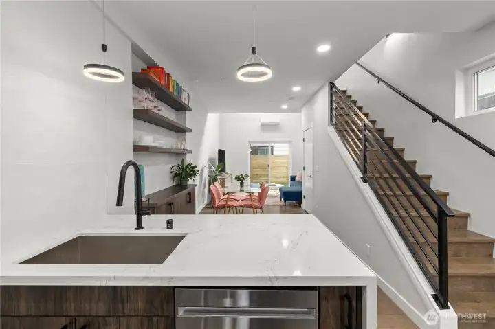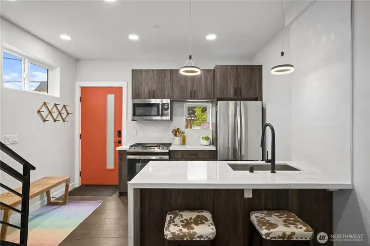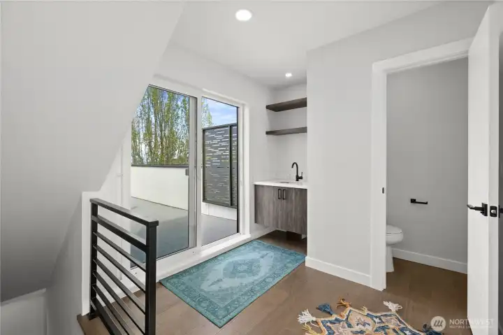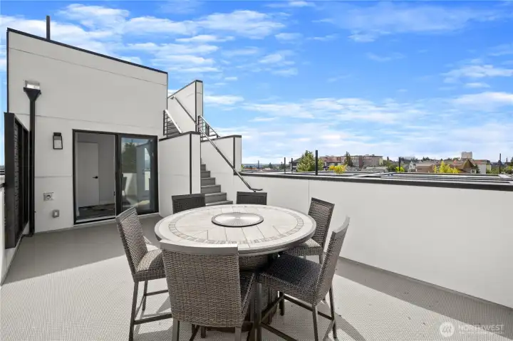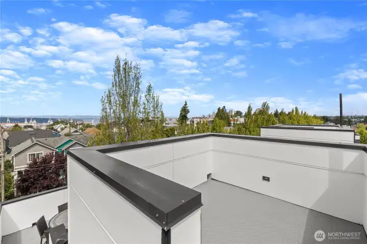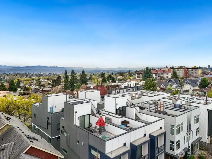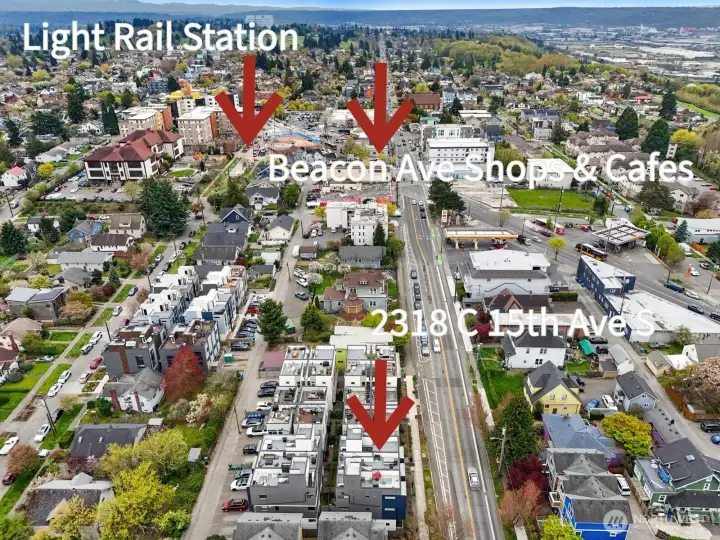 Stunning views await from this modern, south-facing corner unit in the heart of Beacon Hill. Designed with an open-concept layout, the home features soaring living room ceilings and expansive windows that overlook a serene, zen-like private yard. Modern lights, finishes and fixtures throughout. This unique townhome offers 3 spacious bedrooms plus a versatile loft above the living area—perfect for a home office or flex space. Two of the bedrooms open directly onto a private deck, creating seamless indoor-outdoor living. The top floor is made for entertaining, featuring a bonus room with a wet bar and half bath that opens to a spectacular rooftop deck, plumbed for both gas and water. Enjoy three distinct viewing areas with breathtaking 360 degree panoramic views of the Cascade and Olympic mountain ranges, as well as Puget Sound. Ideally located just steps from the light rail station, Red Apple Market, and some of the area’s best cafes and restaurants. Less than 10 minutes from Downtown Seattle. Nestled on a charming tree-lined street, this home also includes a private parking space off the alley. Welcome home!