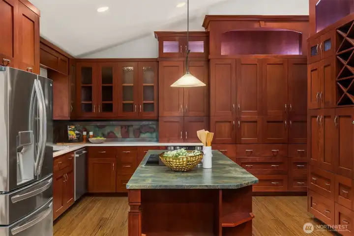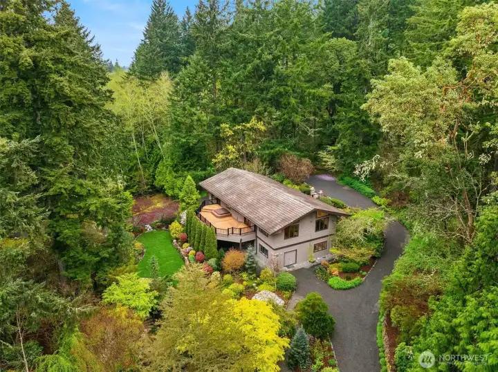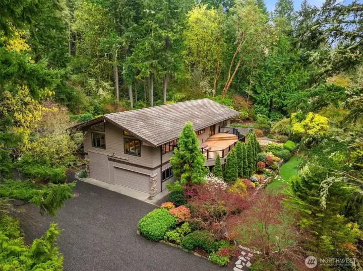 Luxury main-level living meets space and versatility in this beautifully maintained 3,852 sq ft home. Set on a fully fenced lot with lush, professionally designed landscaping and a circular driveway, this private yet conveniently located property offers 4 bedrooms and 3 baths. The thoughtfully updated main level features high ceilings, a stunning propane hearth, and a gourmet kitchen with abundant prep and gathering space, all opening to a light-filled great room overlooking the exquisite grounds. Step outside to the newer deck with hot tub—an ideal setting to enjoy the garden’s vibrant foliage and blooms year-round. The spacious primary suite also opens to the deck and showcases handsome built-ins and a spa-like en suite bath. Radiant heat throughout the main and lower level ensures comfort in every season. The fully finished basement provides incredible flexibility with additional living space, an oversized garage, and a designated shop area. Abundant storage, covered RV parking and room for all your hobbies complete this exceptional offering. Just minutes to Bainbridge ferry and downtown Poulsbo amenities.