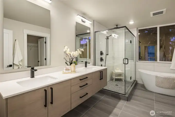 North Beacon Hill living with a little more edge—elevated above the city with skyline and mountain views that hit best from your rooftop deck, whether it’s morning light or late-night hangs. Inside, clean lines, tall ceilings, and hardwood floors set a modern tone that feels both refined and livable. The kitchen is built to gather around, with a quartz island, quality appliances, and a layout that keeps everything connected. Upstairs, the primary suite leans calm and private, with great natural light and a polished, spa-like feel. Zoned heating and A/C keep things comfortable year-round, and an oversized EV-ready garage adds real convenience. All of it just minutes from North Beacon’s go-to spots, neighborhood cafés, and the Light Rail—making it easy to get anywhere while staying rooted in one of Seattle’s most connected communities.