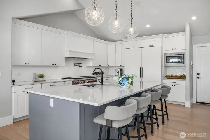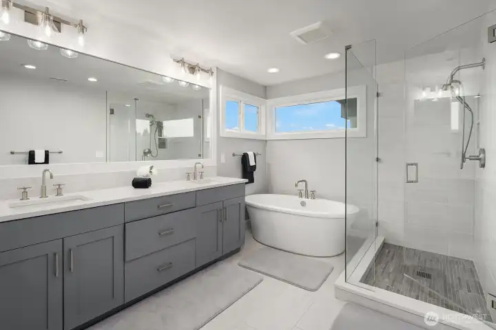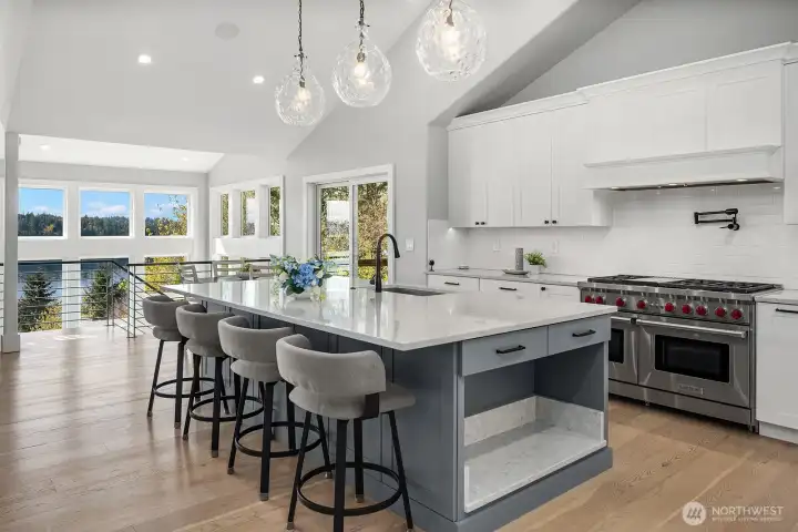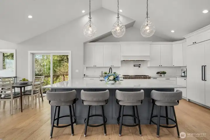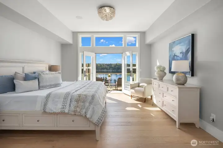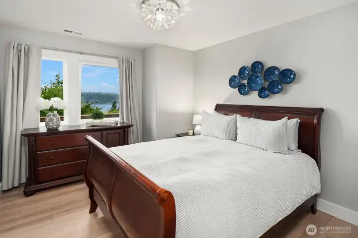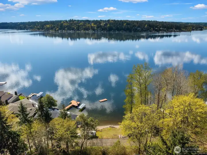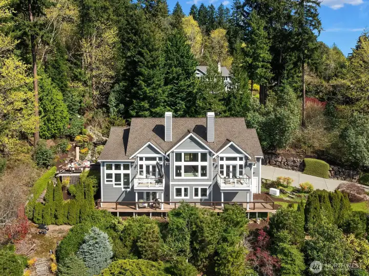 Nestled in the coveted Lake View Estates community, this extraordinary residence offers the ultimate Pacific Northwest lifestyle with private access to the shared Lake Sammamish waterfront. Thoughtfully reimagined from top to bottom with no detail overlooked, this stunning 3,520 sq ft home with 5 bedrooms and 3.25 bathrooms radiates warmth, luxury, and effortless livability. Rich hardwood floors flow throughout the entire home, setting the tone for the refined finishes found at every turn. The showstopping gourmet kitchen features high-end appliances, quartz countertops, and a butler's pantry flowing seamlessly into a formal dining room. The living area is anchored by a gas fireplace perfect for cozy evenings. The primary suite is an extraordinary retreat boasting sweeping lake views, a private deck, soaking tub, spa shower, and a massive walk-in closet. A dedicated main floor office doubles as an optional fifth bedroom. The lower level offers a second primary suite, additional bedrooms, and beautifully remodeled bathrooms opening to a private patio with panoramic views. Step outside to the Trex deck where panoramic views, a fountain, and a lush private hillside create an entertainer's paradise. Whole-home comfort is assured with a 24kW automatic whole-house generator, tankless water heater, dual-fuel heat pump system, and hard-wired level 2 EV charger. A spacious 3-car garage completes this incredible package. Award-winning Lake WA Schools with easy access to I90/520.