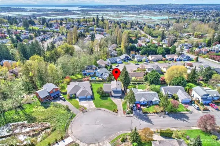 Beautifully maintained 3 bedroom home with stunning views set on a quiet cul-de-sac. This lovingly cared for 1,420 sq. ft. home shows true pride of ownership from the original owners. Inside you’ll find a warm, inviting layout with bright living spaces plus brand new carpet AND paint throughout. Major systems have been updated: Lennox furnace & heat pump installed 2016, cement plank siding & exterior paint 2023, 50 gallon hot water tank 2024, roof & gutters 2019, decks re-built 2024. Step outside to enjoy a large, manicured lawn and two spacious decks — perfect for entertaining or simply taking in the incredible views of Ebey Slough, the surrounding mountains, and spectacular sunsets. Convenient RV parking. This home offers the ideal balance of tranquility and convenience — peaceful surroundings, well-kept neighborhood, and easy access to local amenities. A rare find combining meticulous maintenance, natural beauty, and everyday comfort.