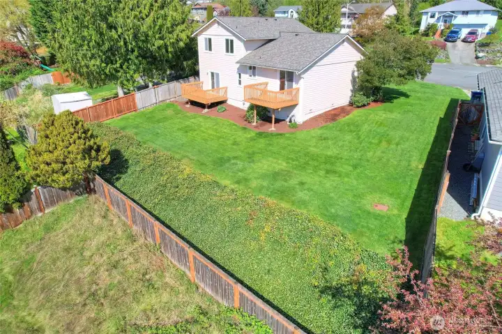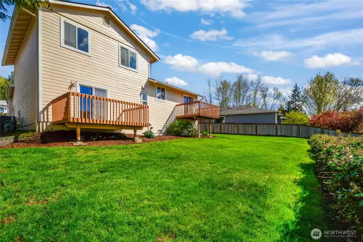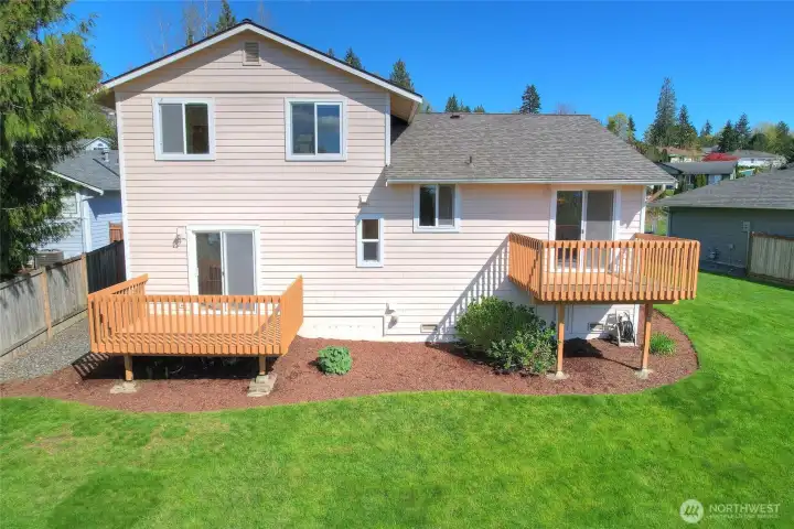 Back yard with two decks!