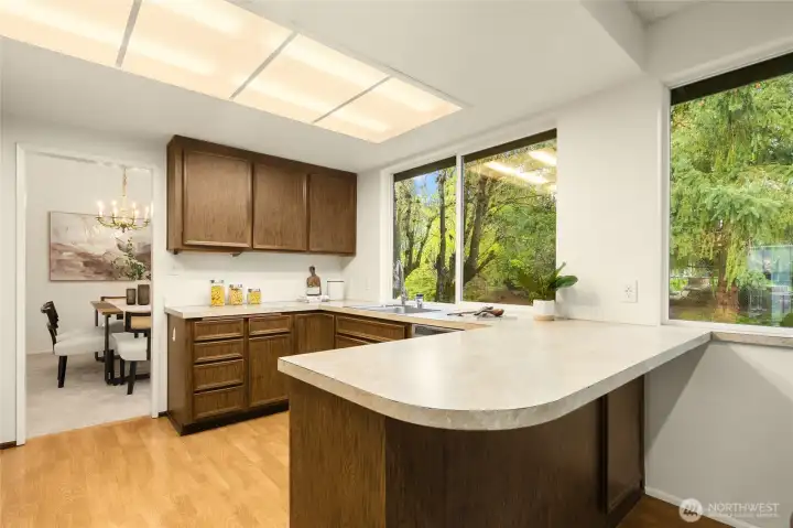 Beautifully maintained [ONE-level] living on an expansive lot on a quiet 'Stay Healthy Street.' This custom home was thoughtfully designed by its original owner with long-term comfort and accessibility in mind. Now offered by only its second owner, the property has been lovingly cared for and kept in exceptional condition. With over 2,000 sq ft of finished [ONE LEVEL] living space, the layout blends openness and functionality: vaulted ceilings, a spacious eat-in kitchen, and a formal dining room perfect for gatherings. The formal living room and inviting family room share a striking double-sided fireplace, creating warmth and character throughout. Down the hall, three generous bedrooms and two baths complete the main level. A standout bonus: an additional 1,000± sq ft of clean, open lower-level space—ideal for storage, hobbies, or future finishing. The home offers a wonderful opportunity for a buyer to bring their own vision and style to an already exceptional floorplan. Highly coveted, rarely available, and impeccably preserved. Minutes to amenities, the Burke-Gilam Trail and 522. Pre-Inspected too.