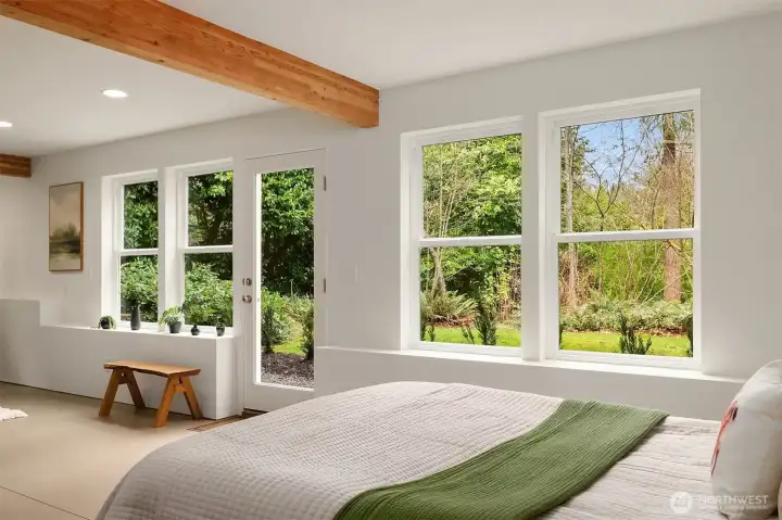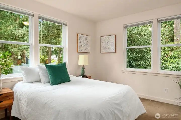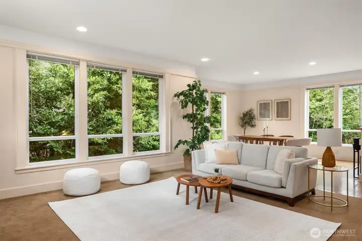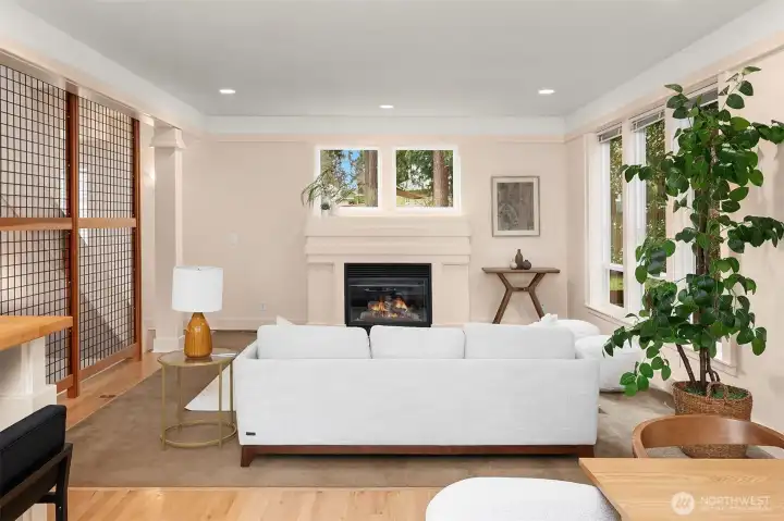 Nestled on a cosy cul-de-sac in a choice Pinehurst neighorhood, this stunning five-bedroom home - meticulously designed and built - excels in comfort and versatility. The expansive floor plan offers generous room sizes throughout, including multiple living areas for entertaining, relaxing, or working from home. A spacious chef's kitchen, featuring bar seating, opens to a well-appointed living area with a gas fireplace. Abundant windows and skylights provide plentiful natural light and serene views of the landscape. A green oasis in the city! The sunlit, covered front porch allows gracious entertaining or quiet moments. There are four large bedrooms upstairs, two with ensuite bathrooms. Closets are generous. The primary bedroom has vaulted ceilings and a lofty outlook. A bright daylight basement with multiple windows and a private outside entrance is plumbed for kitchen and bathroom. This home is nicely tucked away, yet it is situated for an easy commute downtown or to the north. Plus, it's a short walk to the new Pinehurst light rail station, opening 2026. Pre-inspected.