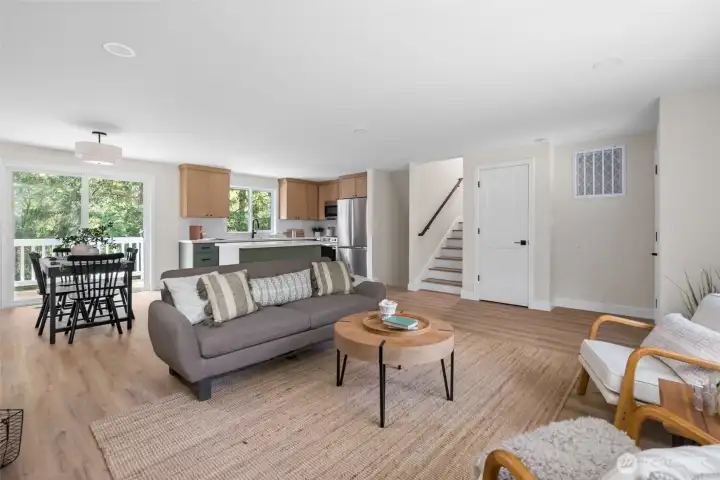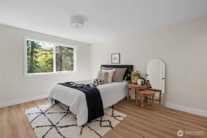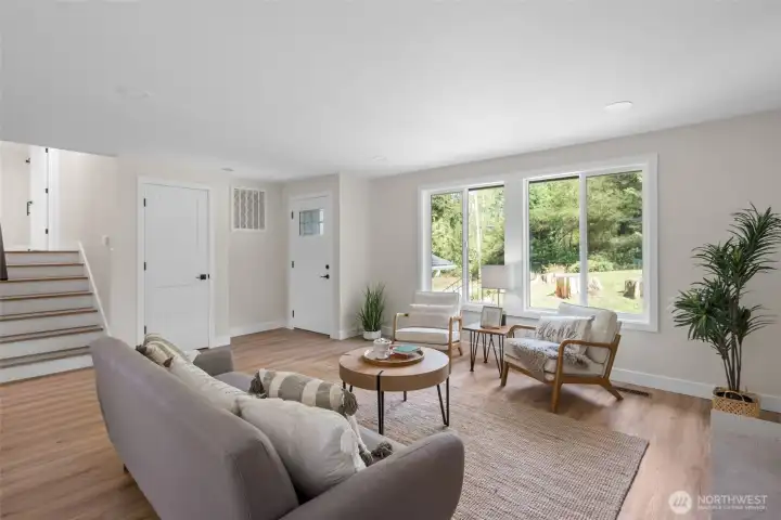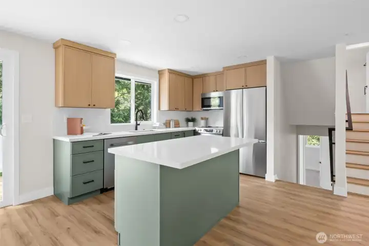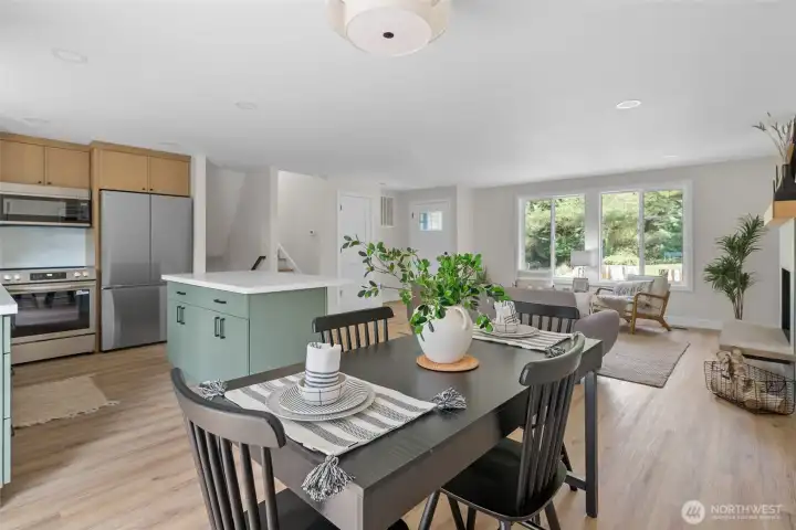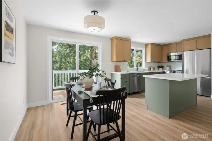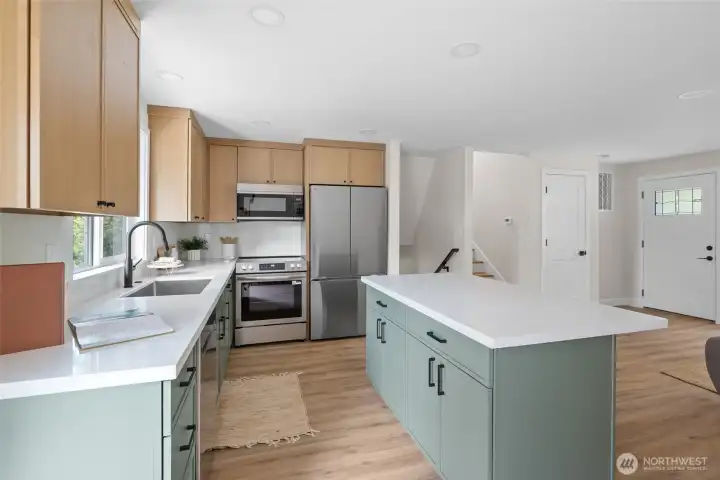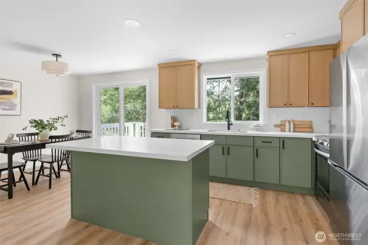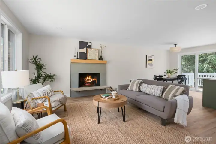 Move-in ready and completely renovated, this stunning split-level home in Anacortes blends modern design with Pacific Northwest charm. Nestled on an oversized lot surrounded by mature trees, this property offers privacy, space, and a true turnkey lifestyle. Step inside to a light-filled interior featuring a fully remodeled kitchen with a large island, quartz countertops, custom cabinetry, and stainless steel appliances—perfect for entertaining and everyday living. The open-concept living and dining areas flow seamlessly, highlighted by a cozy fireplace, new flooring, fresh interior paint, and all-new trim and doors throughout. Enjoy indoor-outdoor living with direct access to a private deck and spacious patio, ideal for hosting or relaxing while taking in peaceful territorial views. Additional features include flexible living spaces for a home office or bonus area, an attached two-car garage, and plenty of room for gardening and play. Located just minutes from downtown Anacortes, parks, trails, and waterfront access, this beautifully updated home offers the perfect combination of style, comfort, and location—with easy access to I-5 for commuters.